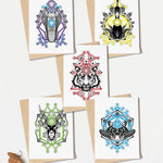 5-pack greeting card bundle of the Animalis collection: Blackbuck Antelope (Earth), Hawksbill Turtle (Water), Bengal Tiger (Fire), Indian Peafowl (Air) and Spectacled Cobra (Aether).
