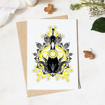 - Greeting cards are blank on the inside and come with C6 sized kraft envelopes.