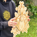 The Peafowl is a graceful animal representing integrity, vision, and artistic ability. In Hindu mythology it is known as a spiritual teacher associated with guidance, patience, and knowledge. The male Peafowl, known as the Peacock, is well known for its remarkably vibrant plumage. As the bird explores the movement of air amidst its feathers, it unfolds into a dazzling display of its true colours. The Peacock can be a reminder that it is okay to stand out in a crowd and offer truth to the world.