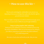 - Set aside a dedicated time for your meditation or mindfulness practice. If using the kit with the guided meditation, we recommend to set aside approximately 30 minutes.