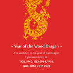 2024 is the Year of the Wood Dragon. The Wood Dragon, known for its resilience and grwoth, brings a promise of renewal and transformation. 2024 is a year to harness the Dragon's vibrant energy, encouraging ambition, innovation, and the pursuit of dreams.