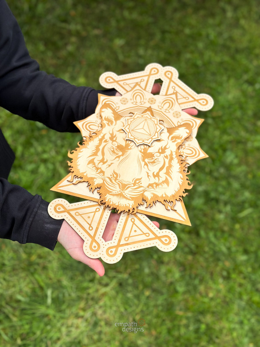 The Tiger is a powerful and courageous animal, often worshipped in ancient Hindu tribes as a hunter and protector. Throughout history the Tiger has been revered for its power, and often associated with the characteristics of fire. Hindu hymns have compared domestic fires to tigers that guard the home, and many see the animal drawing deeply on this primal energy as it powers toward its target.