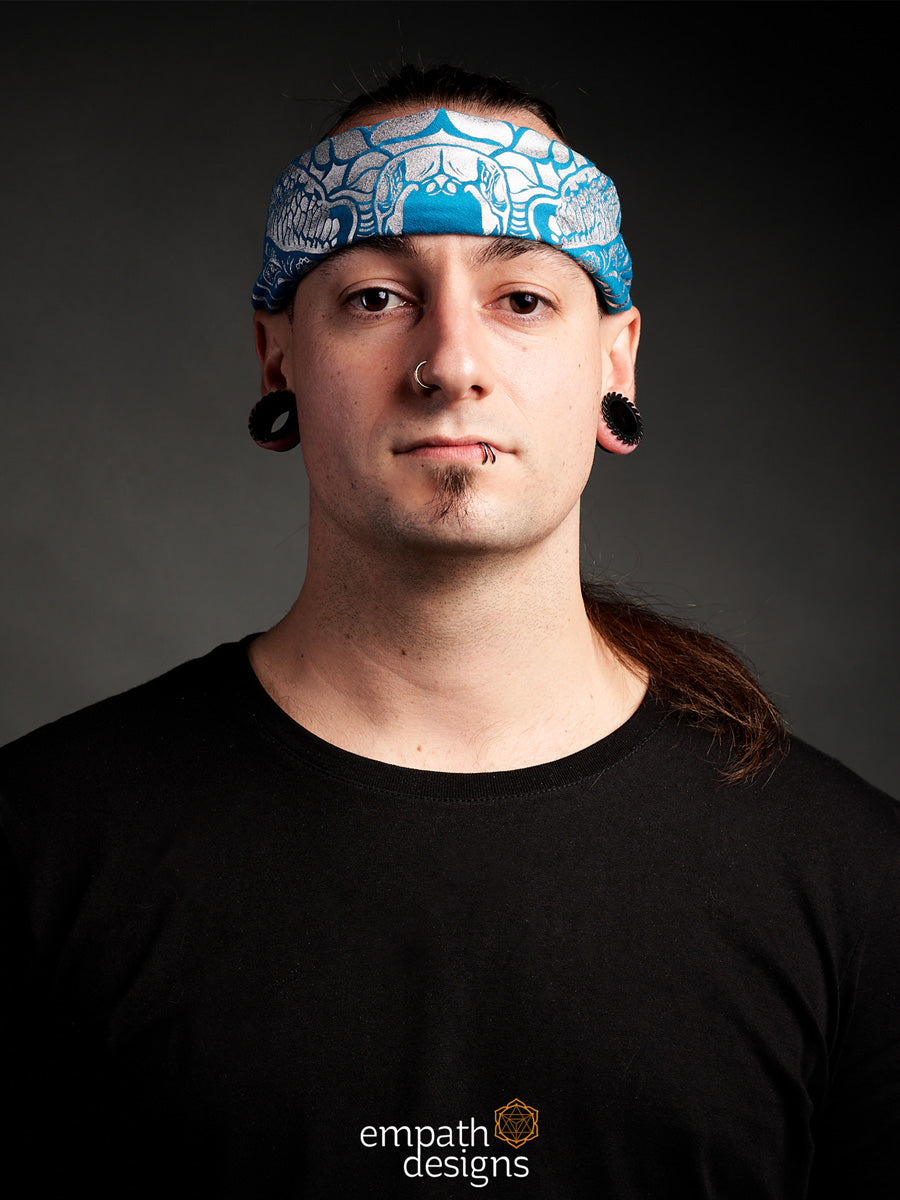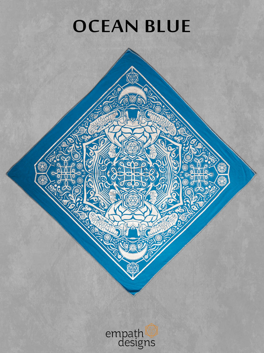 ‘Serenity’ is an evolution of the Hawksbill Turtle design from the Animalis collection, printed in metallic silver ink on Ocean Blue. Incorporating an original paisley design that’s inspired by Hindu art, these bandanas are handmade with love and are the perfect accessory to allow your inner turtle to go with the flow.