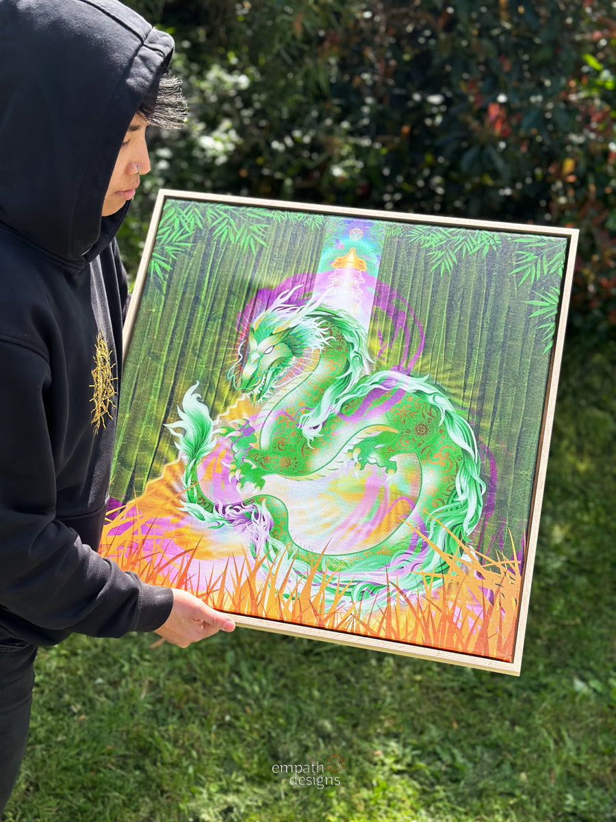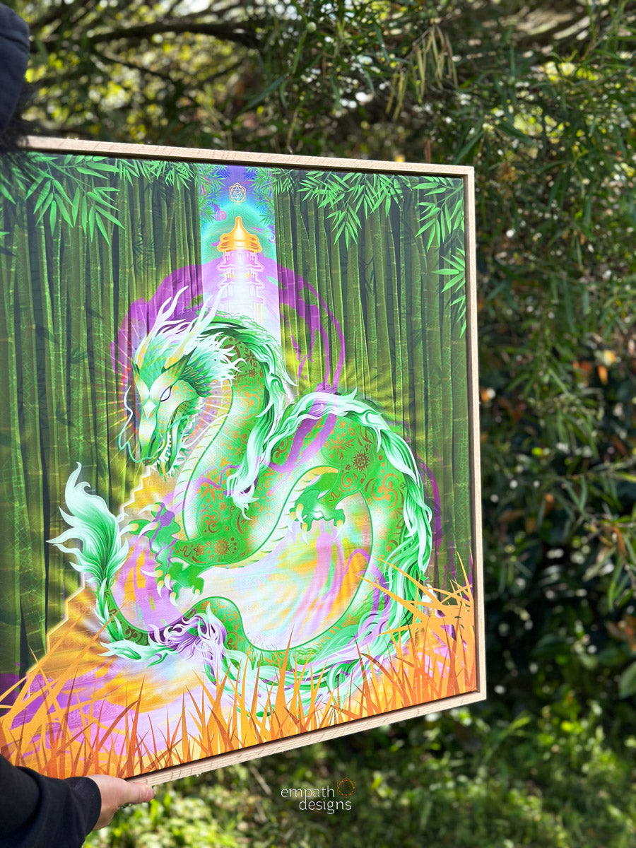 The Wood Dragon embodies transformation, guidance, and resilience. Its dynamic presence in the artwork invites you to pause, reflect, and reconnect with yourself.
