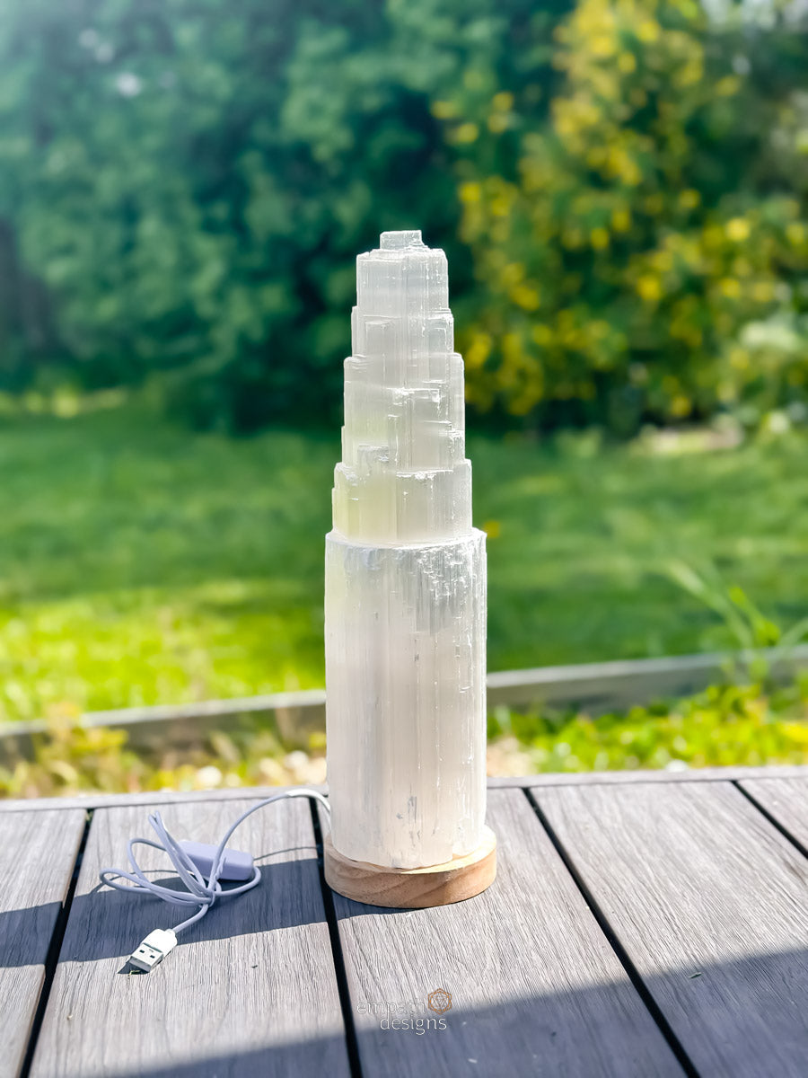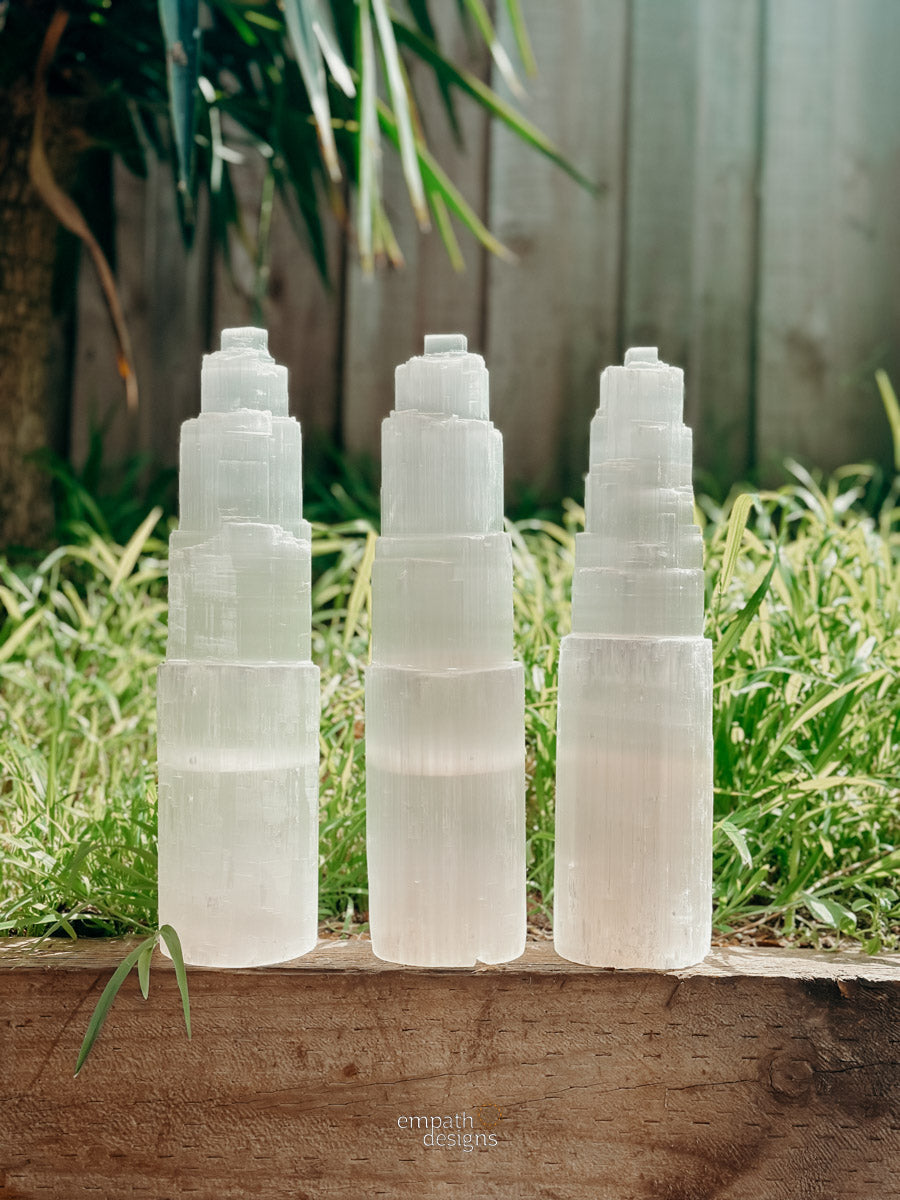 Perfect for crystal enthusiasts, thoughtful gift-givers, and anyone seeking to enhance their spiritual space, the Selenite Crystal Tower radiates calming energy while elegantly complementing any setting.