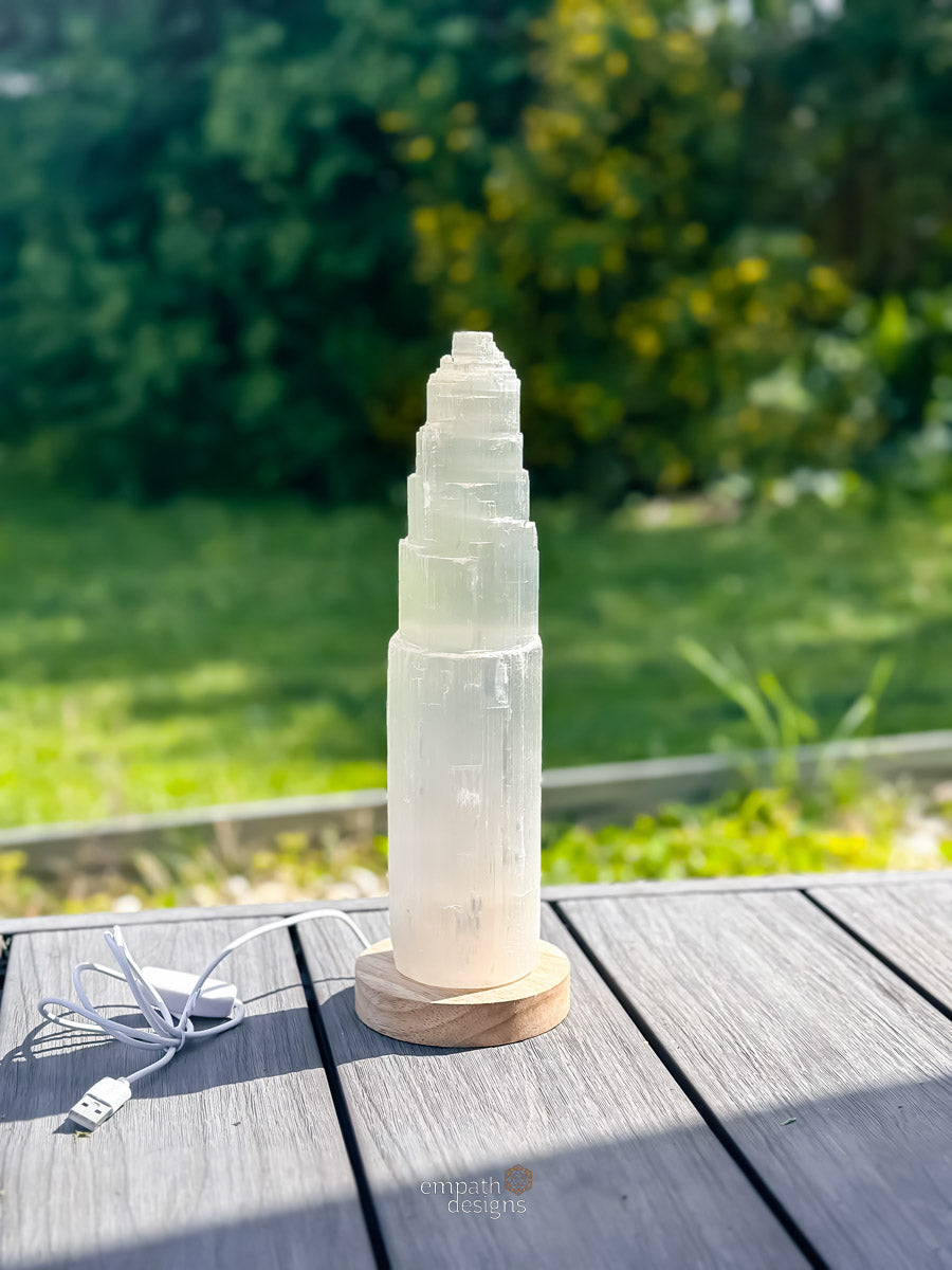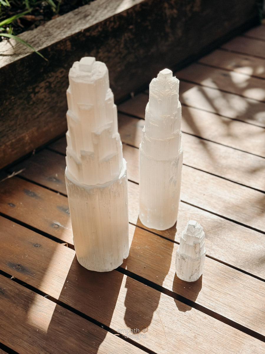 Perfect for crystal enthusiasts, thoughtful gift-givers, and anyone seeking to enhance their spiritual space, the Selenite Crystal Tower radiates calming energy while elegantly complementing any setting.