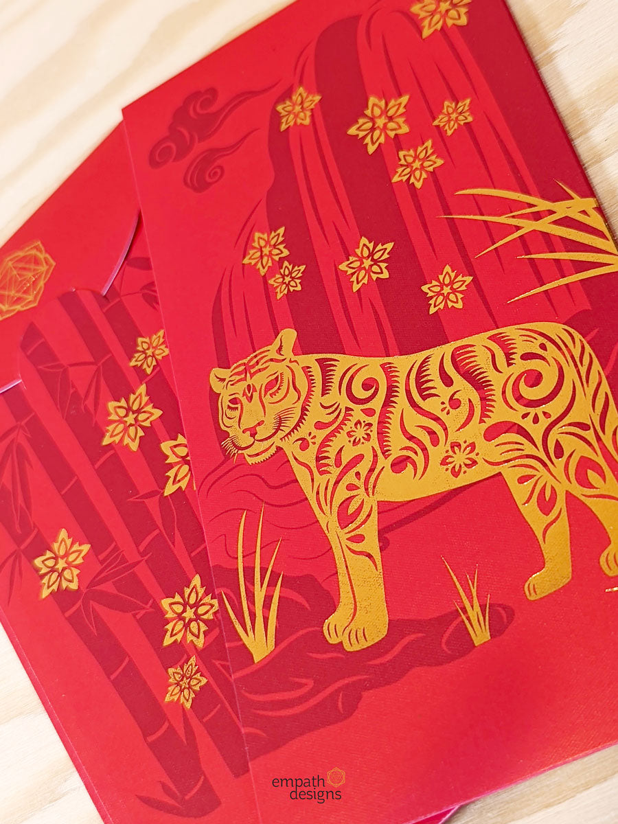 Printed on a gorgeous Valaris paper with gold hot-stamp finish, lets celebrate the start of a the third year of the 12-year cycle with this beautiful and symbolic red packets which you can gift to your loved ones or keep for collection. This original tiger design is inspired by the ancient practice of Chinese paper cutting. Read the full description for the symbolic meaning of red packets, and the Chinese Zodiac.