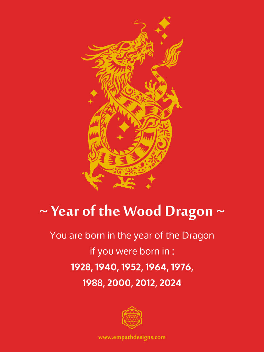 You are born in the year of the Dragon if you were born in 1928, 1940, 1952, 1964, 1976, 1988, 2000, 2012, 2024.