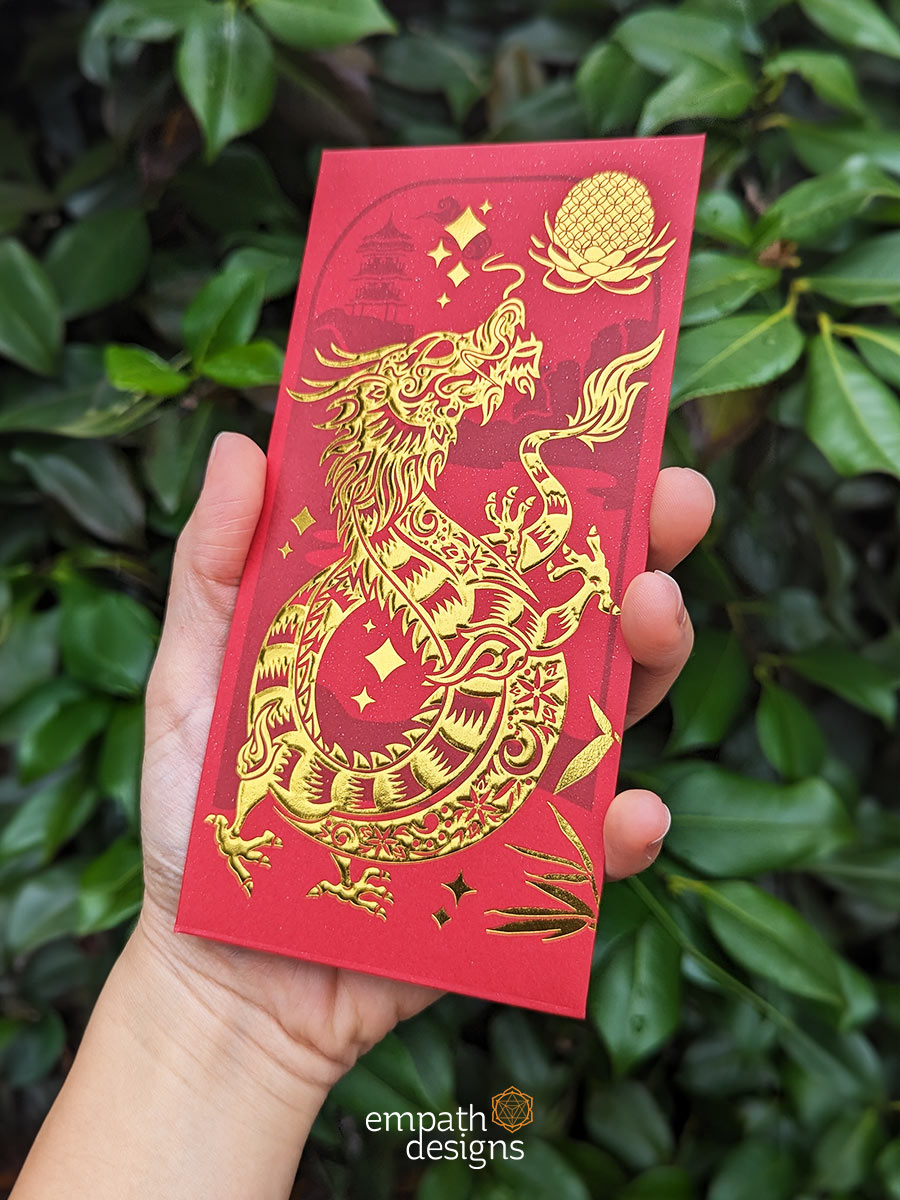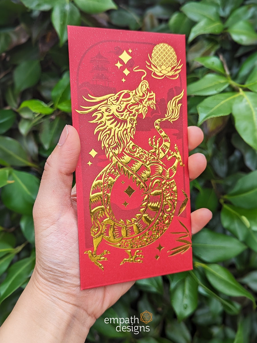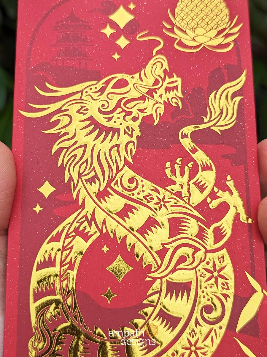 Let’s collectively usher in the Lunar New Year of 2024 with our unique and elegant Wood Dragon Red Packets. As we step into the fifth year of the 12-year Chinese Zodiac cycle, these red packets offer a perfect blend of tradition and modern design, making them ideal for gifting and collecting.