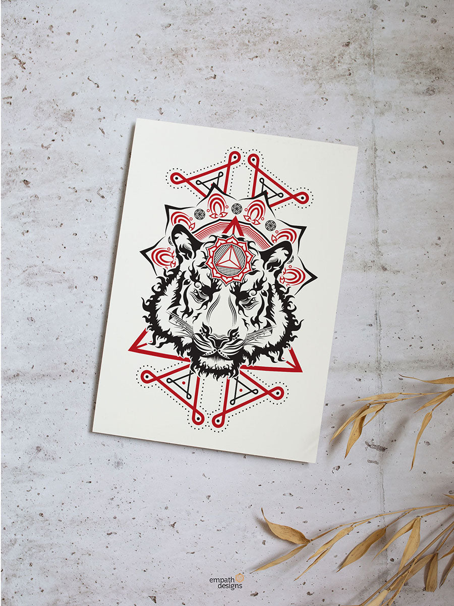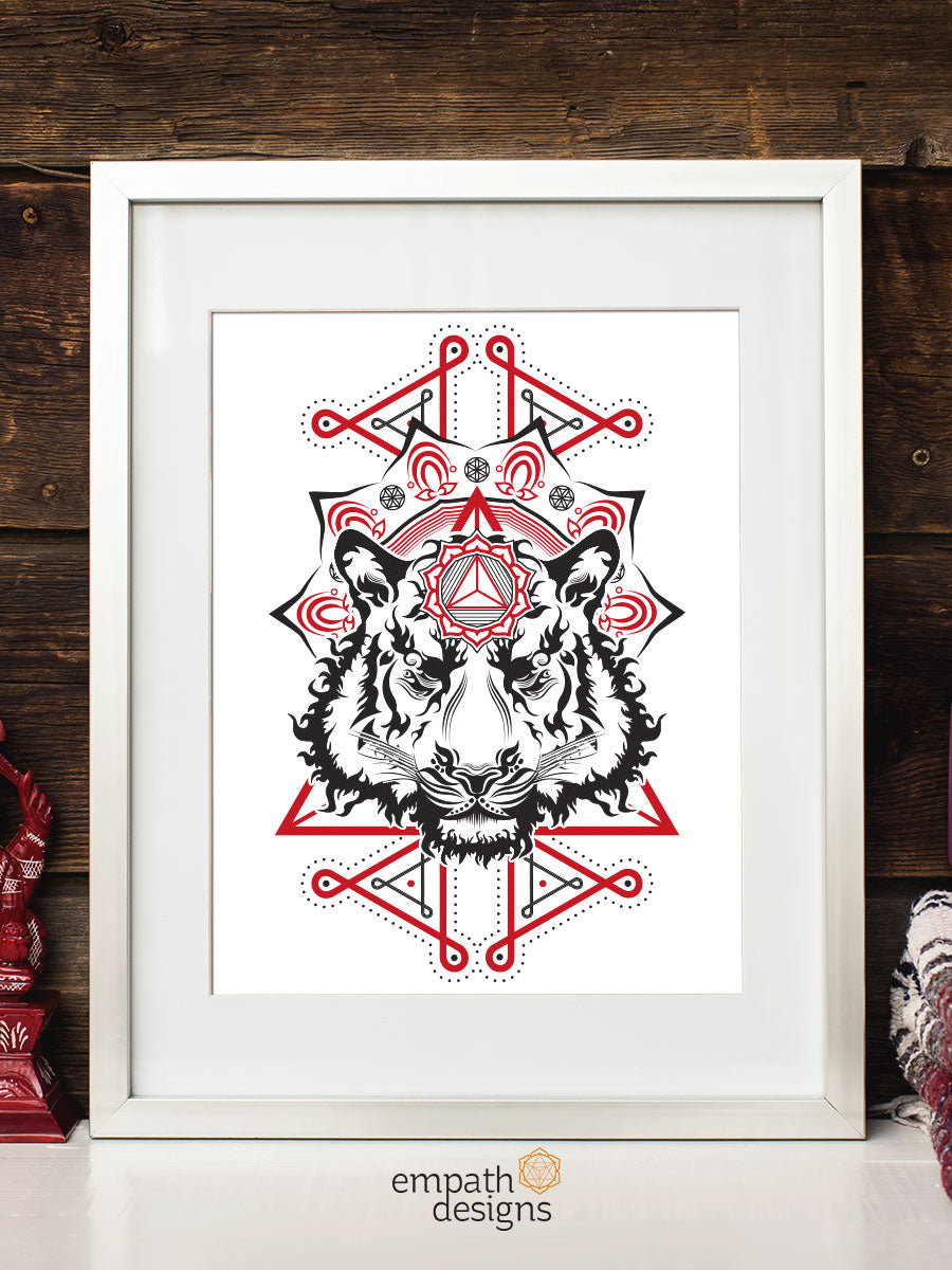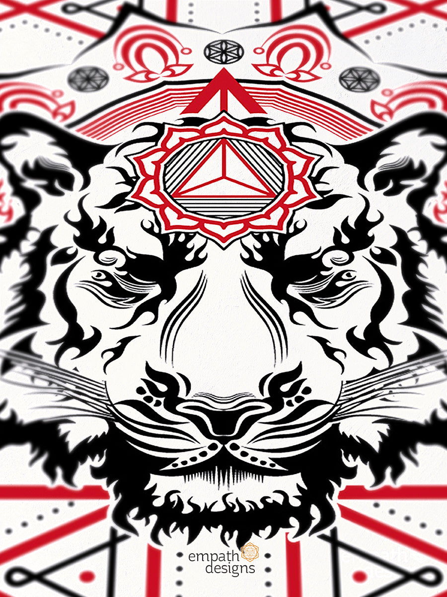 The Tiger is a powerful and courageous animal, often worshipped in ancient Hindu tribes as a hunter and protector. Throughout history the Tiger has been revered for its power, and often associated with the characteristics of fire. Hindu hymns have compared domestic fires to tigers that guard the home, and many see the animal drawing deeply on this primal energy as it powers toward its target.
