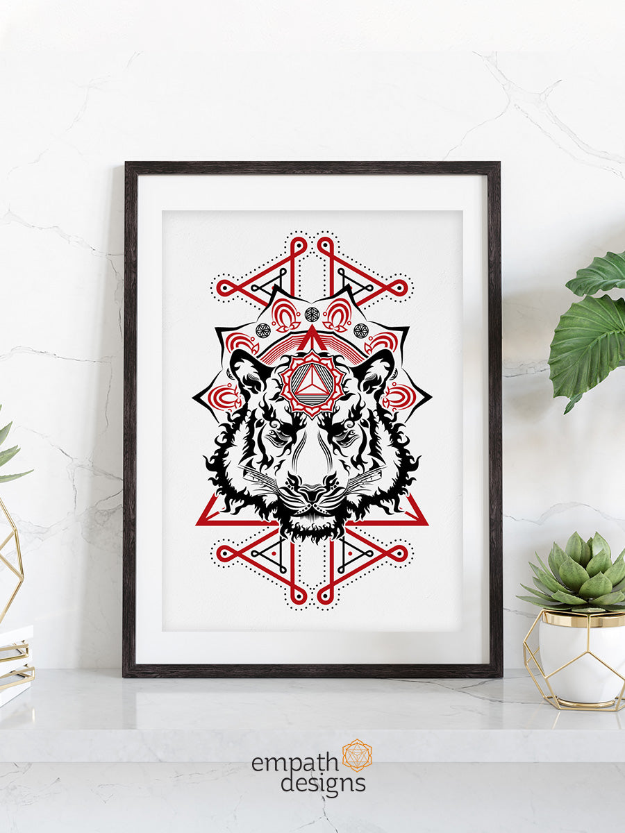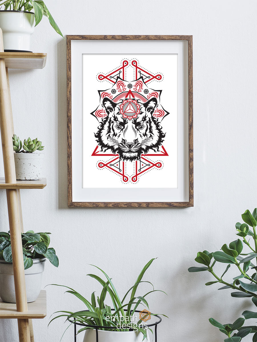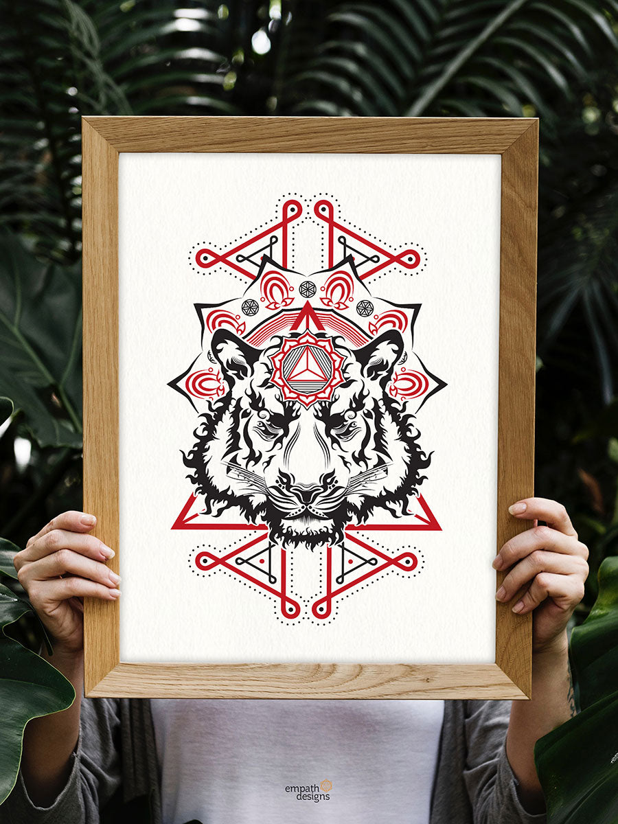 The Tiger is a powerful and courageous animal, often worshipped in ancient Hindu tribes as a hunter and protector. Throughout history the Tiger has been revered for its power, and often associated with the characteristics of fire. Hindu hymns have compared domestic fires to tigers that guard the home, and many see the animal drawing deeply on this primal energy as it powers toward its target.
