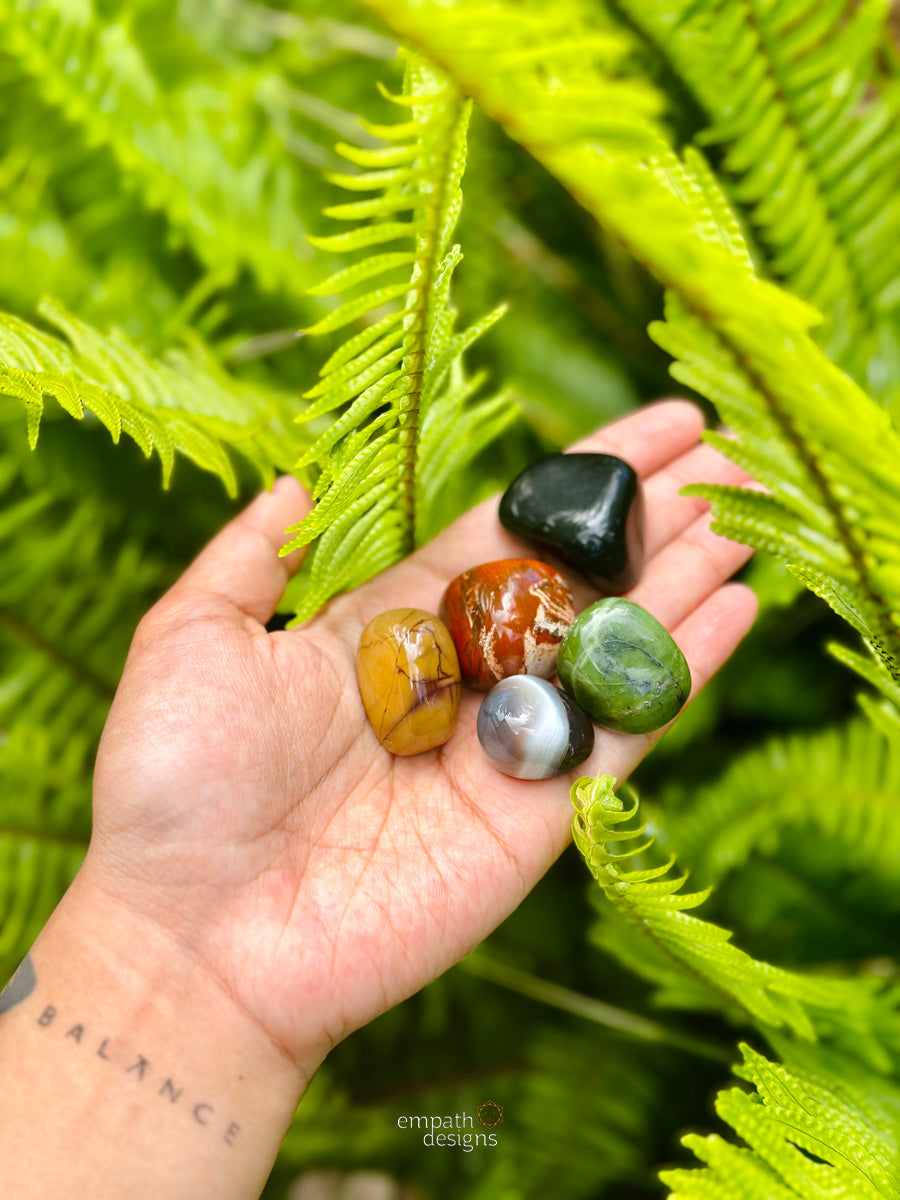 Each crystal in this kit is specifically chosen for its strong connection to Earth's grounding energies and its ability to offer protection and emotional balance. These stones serve as your personal anchors, helping you maintain a steady and serene presence.