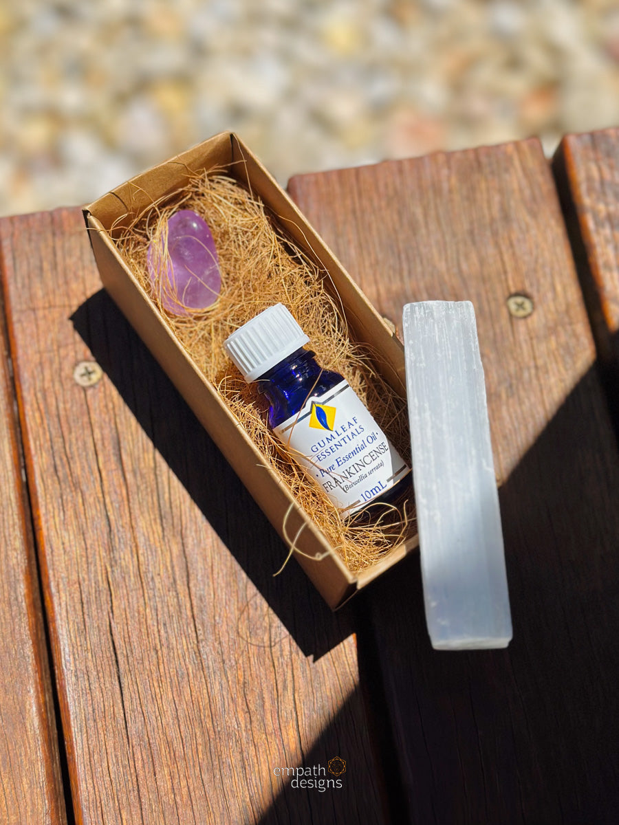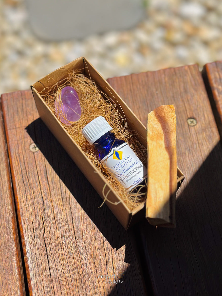 Compact yet spiritually enriching, the Harmony Mini Meditation Kit is your guide to a balanced and spiritually connected life, offering a simple yet profound way to engage with your sense of smell and touch, and embark on a journey of harmony and spiritual fulfillment.