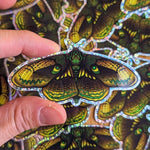 This high-quality, weatherproof sticker captures the essence of transformation and resilience as embodied by the moth.