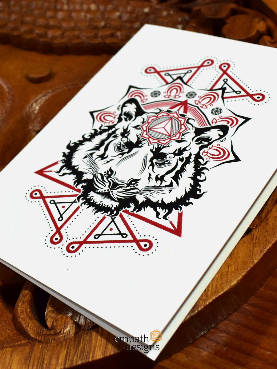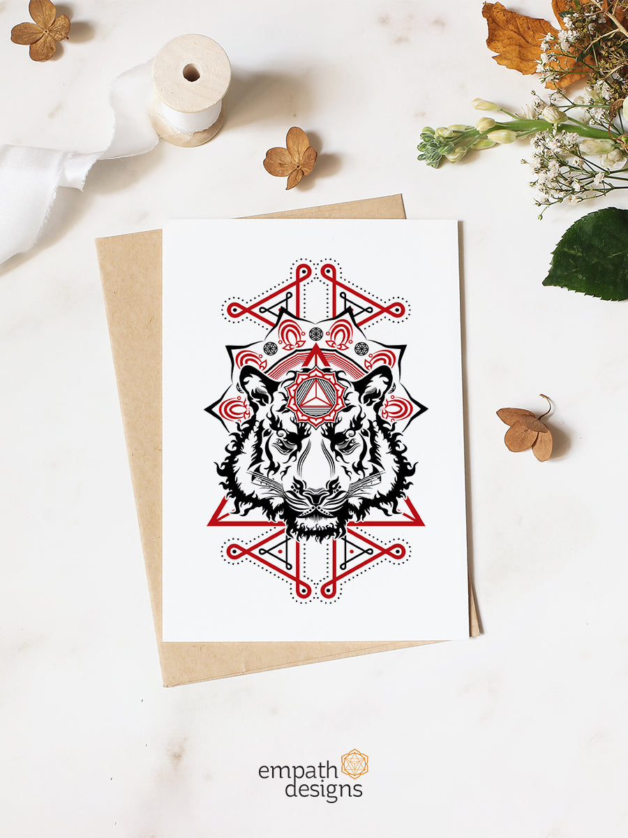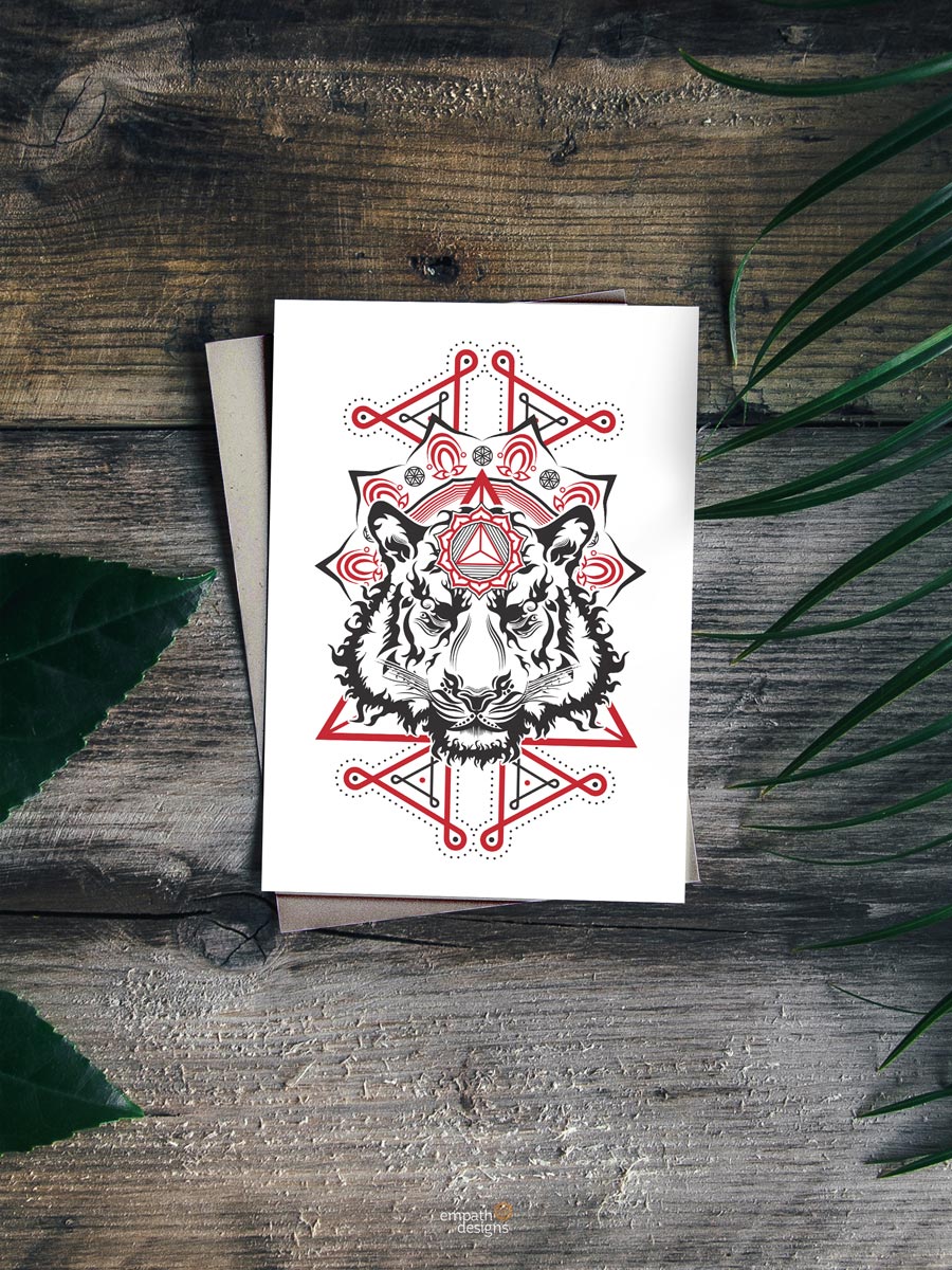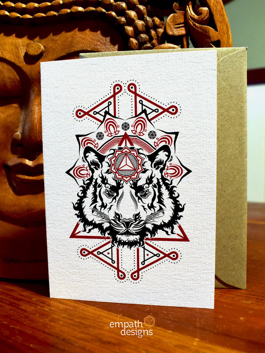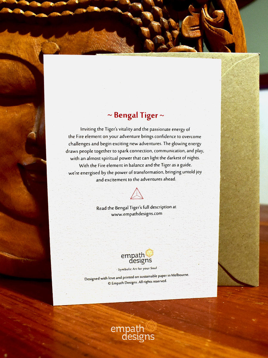 The Tiger is a powerful and courageous animal, often worshipped in ancient Hindu tribes as a hunter and protector. Throughout history the Tiger has been revered for its power, and often associated with the characteristics of fire. Hindu hymns have compared domestic fires to tigers that guard the home, and many see the animal drawing deeply on this primal energy as it powers toward its target.