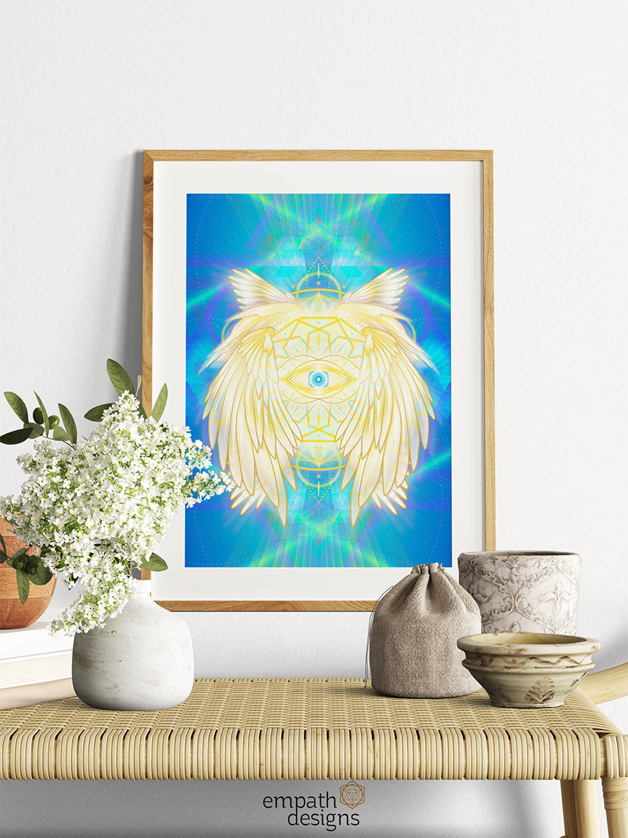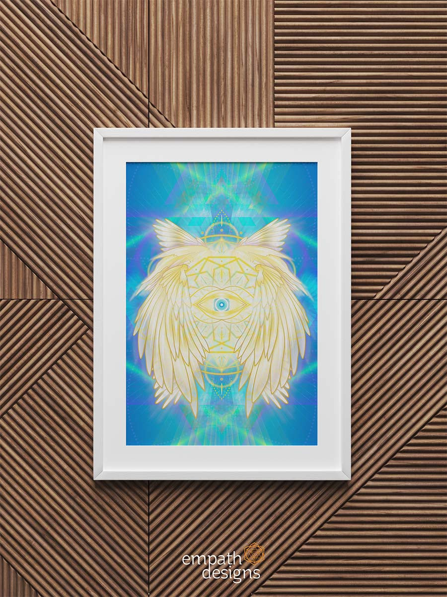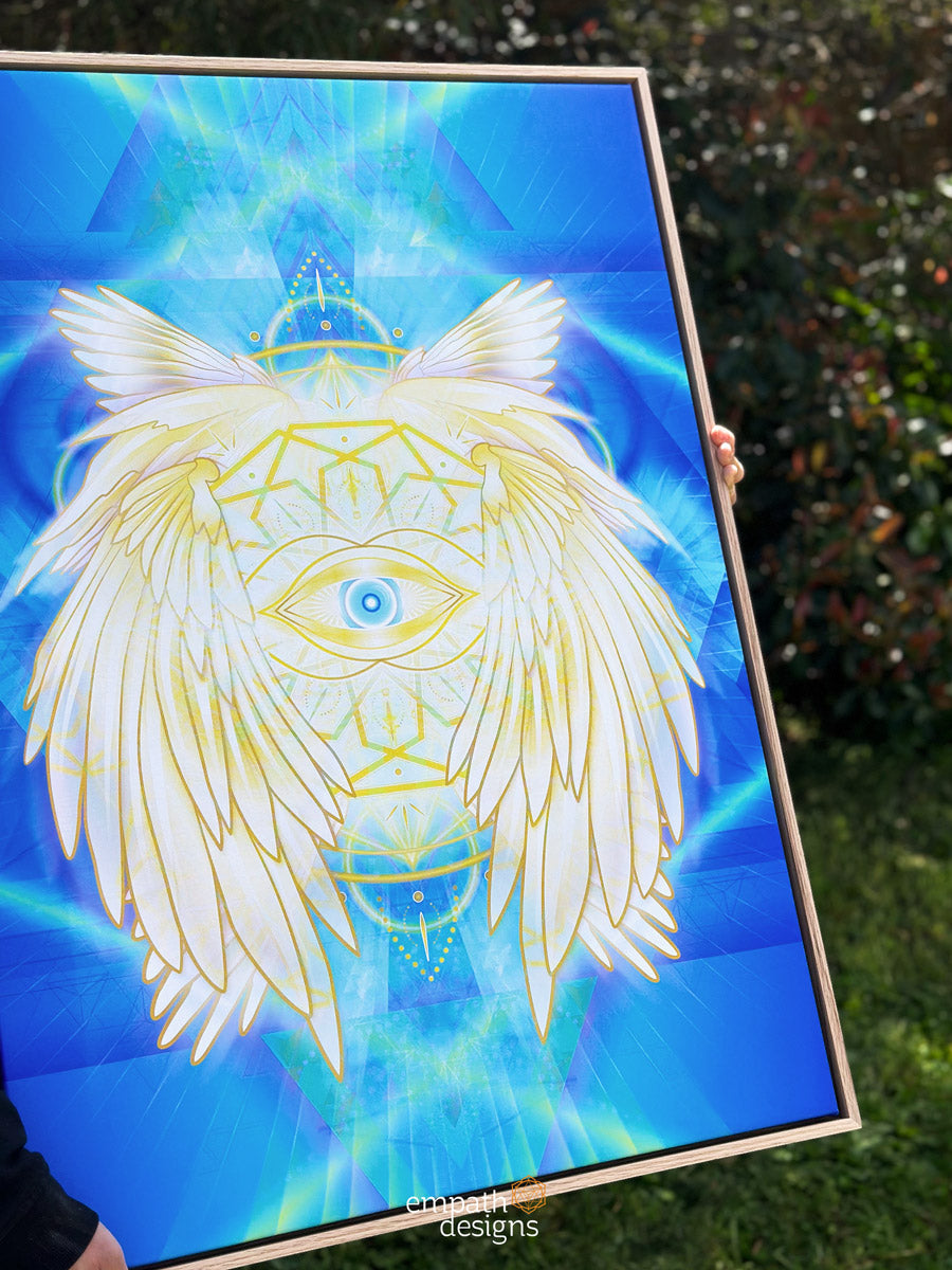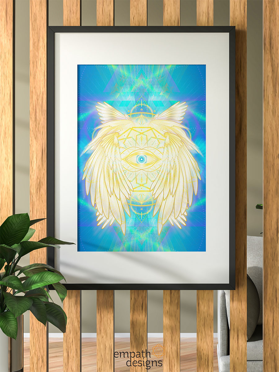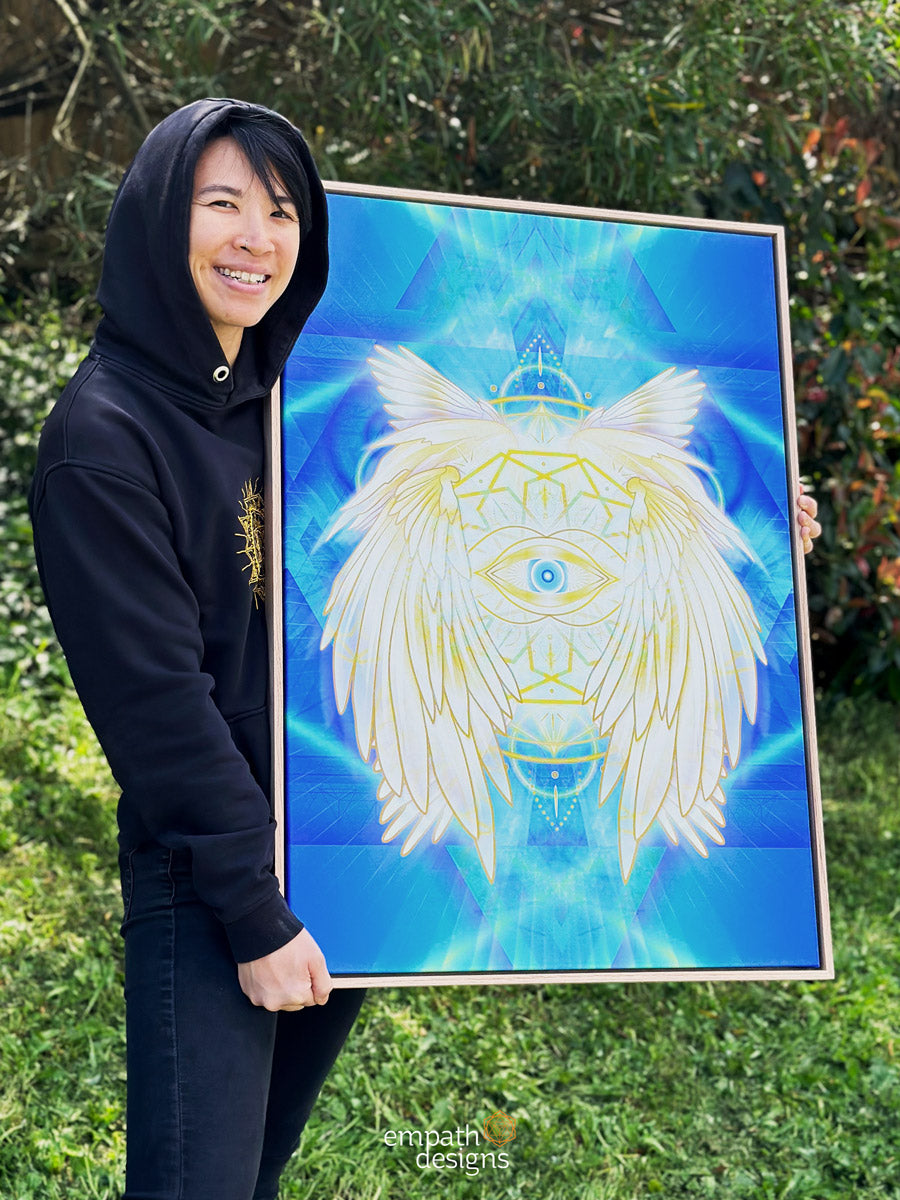 This artwork embodies simplicity and gentleness, capturing the serene gaze of a Seraph that wraps you in warmth and acceptance, constantly affirming that you are always loved.