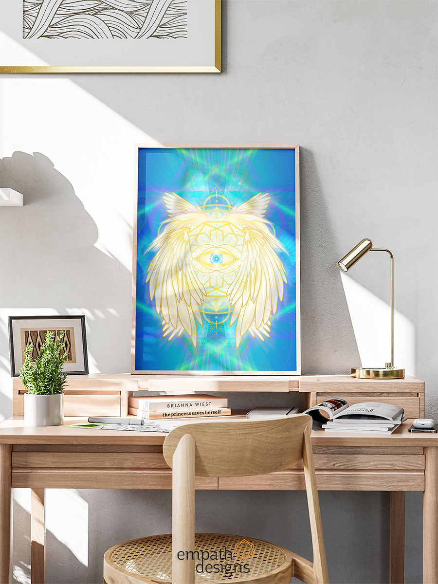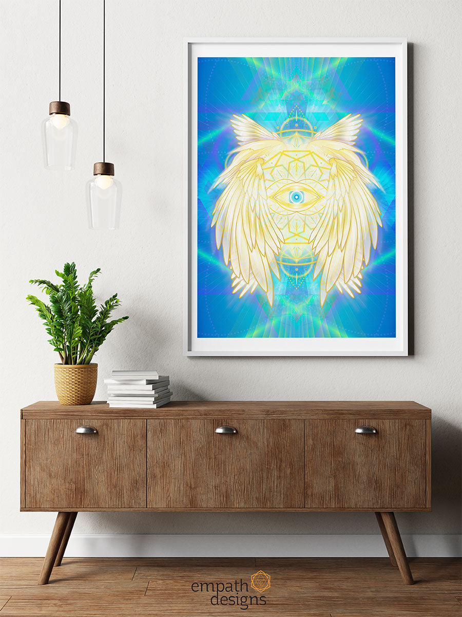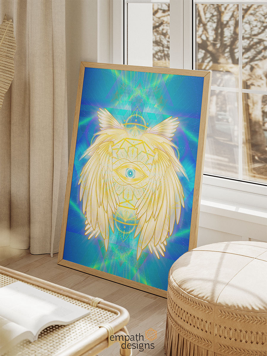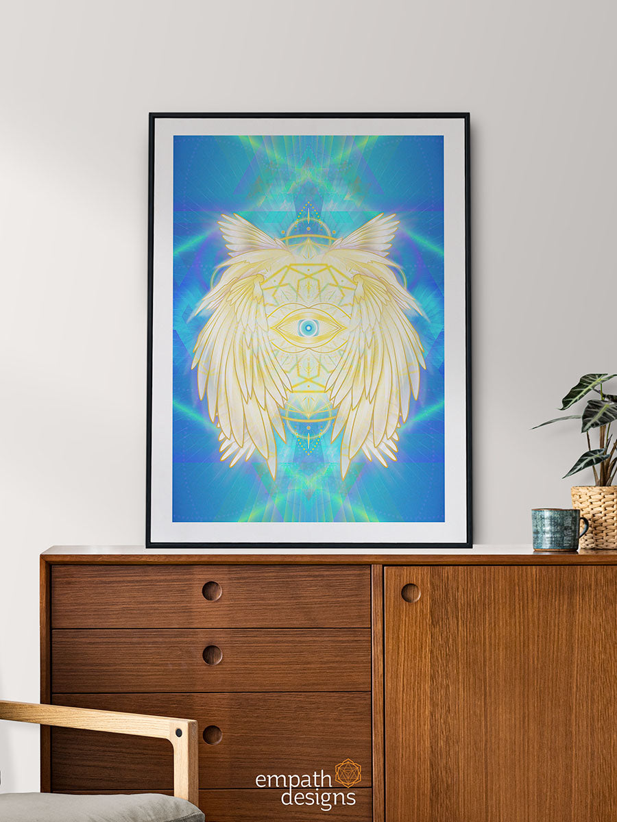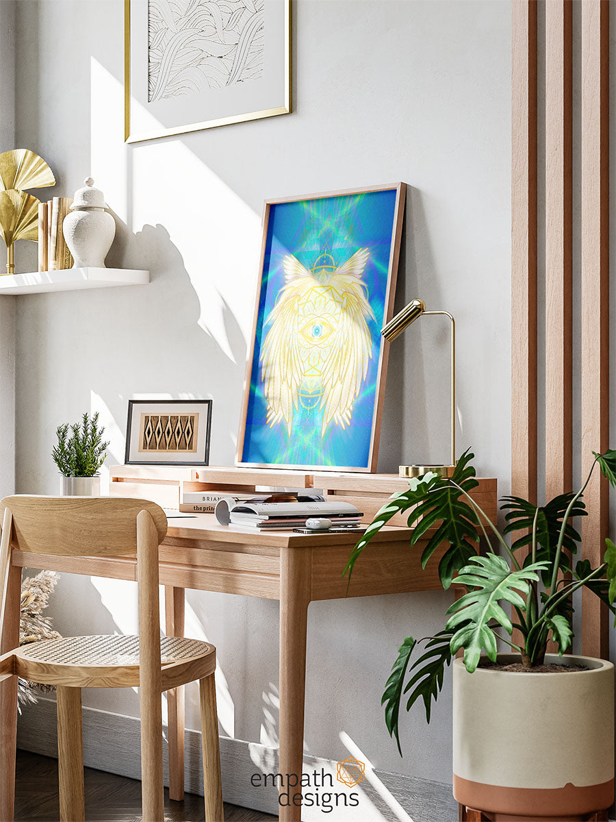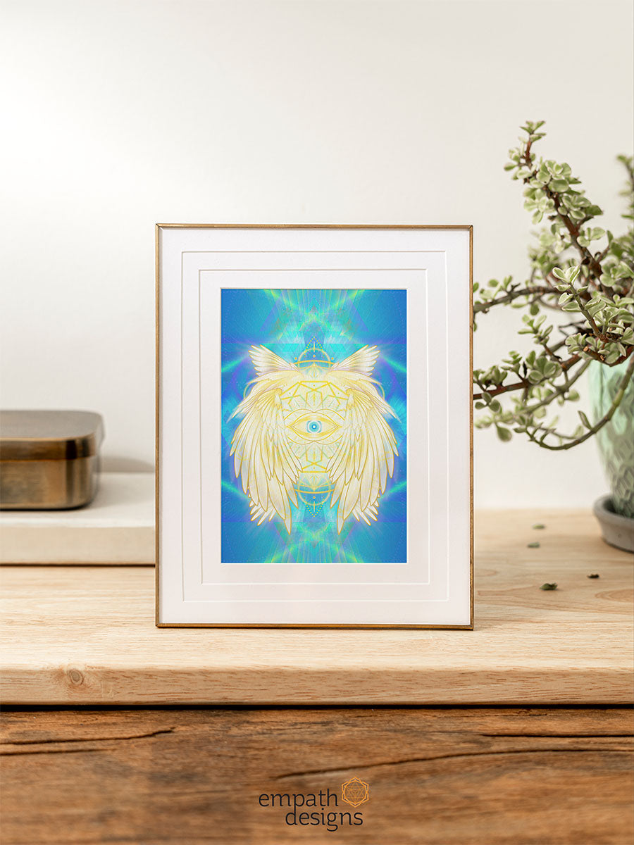 This artwork embodies simplicity and gentleness, capturing the serene gaze of a Seraph that wraps you in warmth and acceptance, constantly affirming that you are always loved.