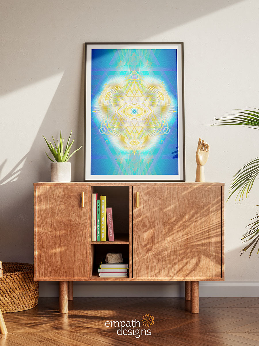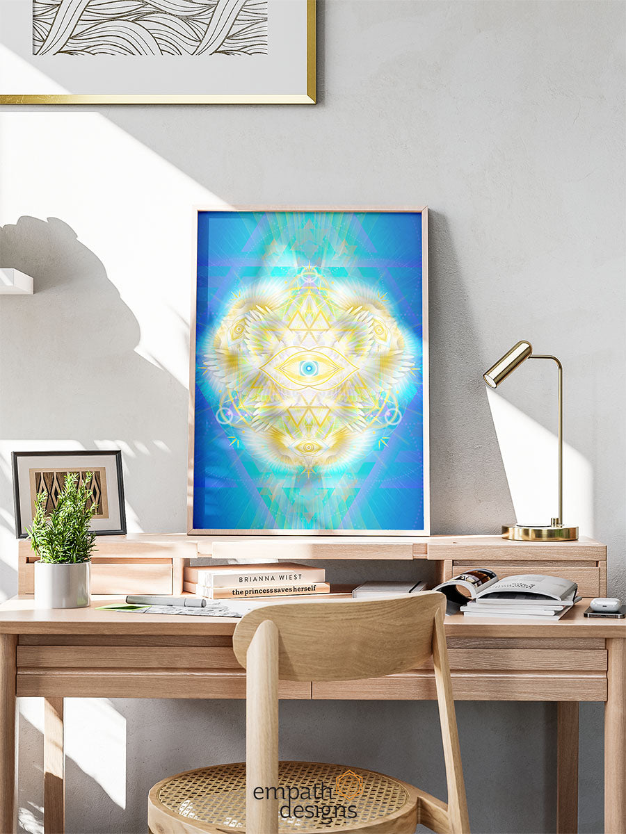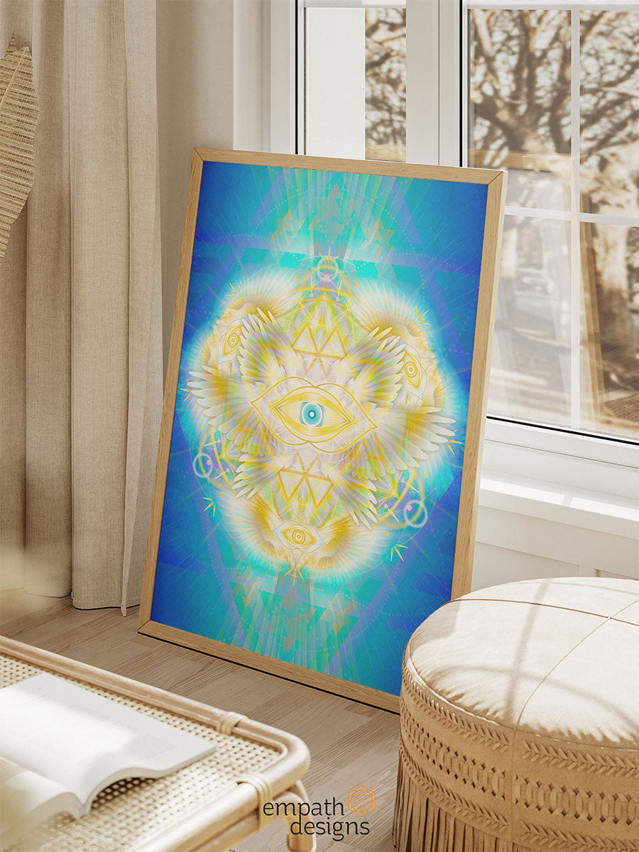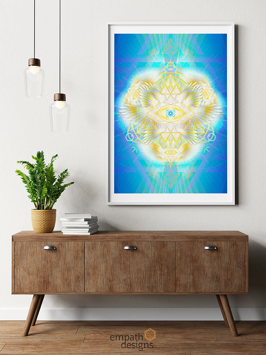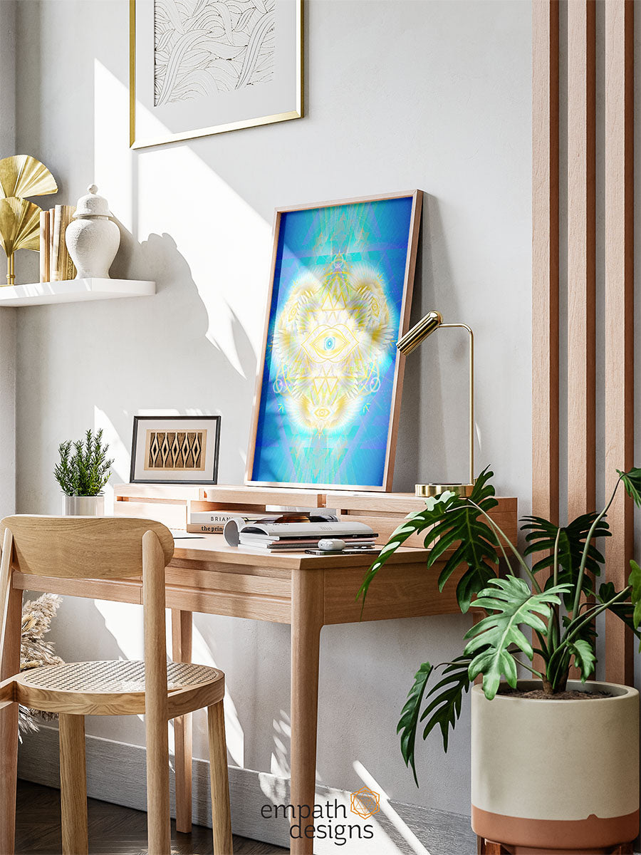 This piece is perfect for anyone drawn to spiritual art and looking for a daily reminder of the power of now and the peace that comes with self-acceptance.