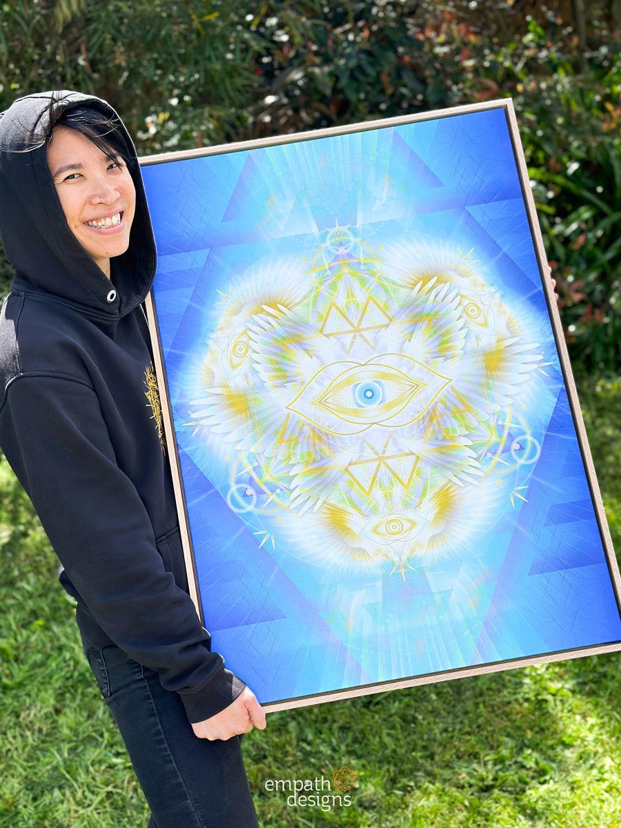 Welcome 'WE ARE HERE NOW' into your collection, and let your space resonate with the frequencies of the divine.