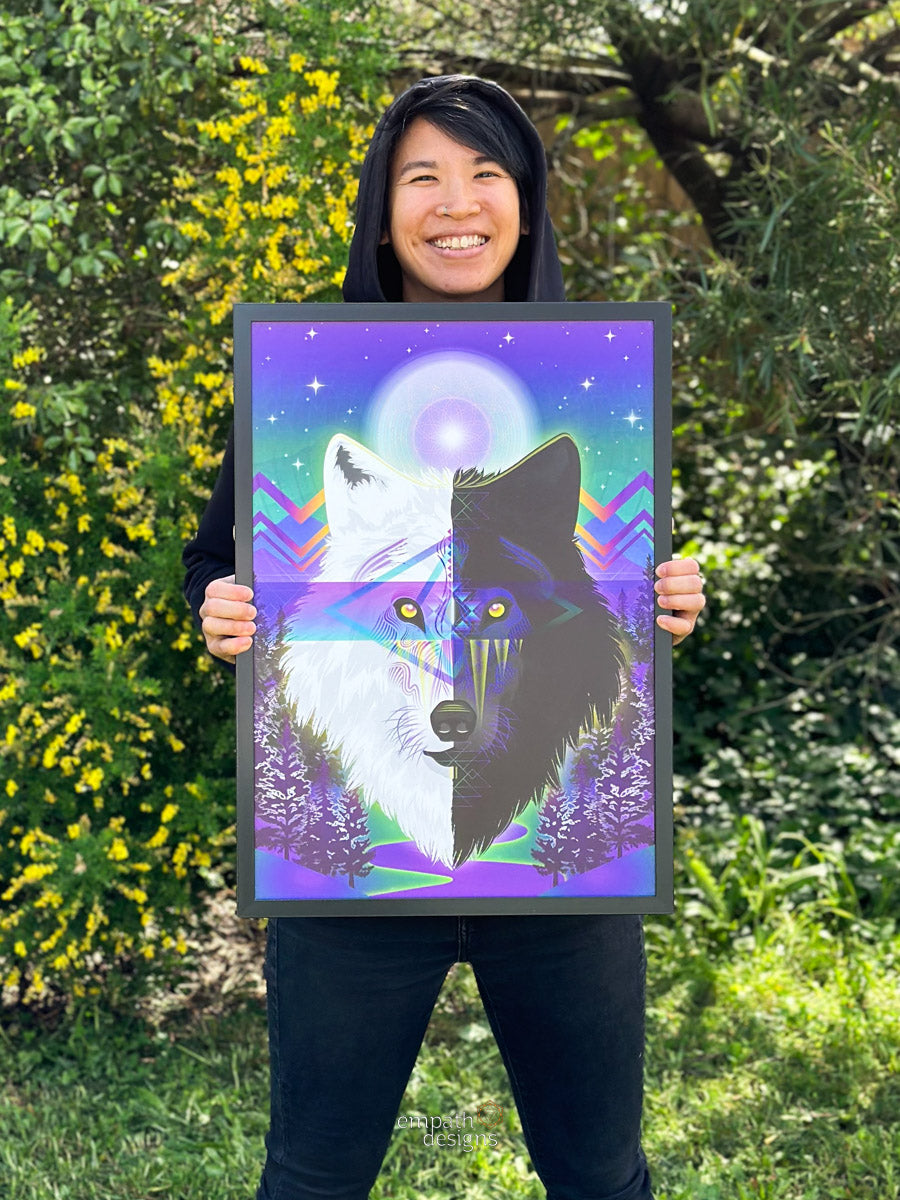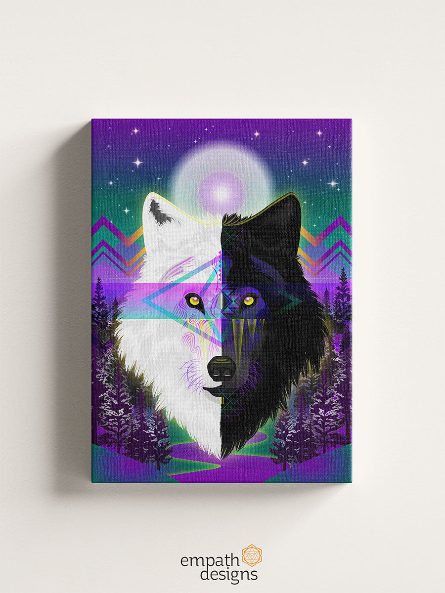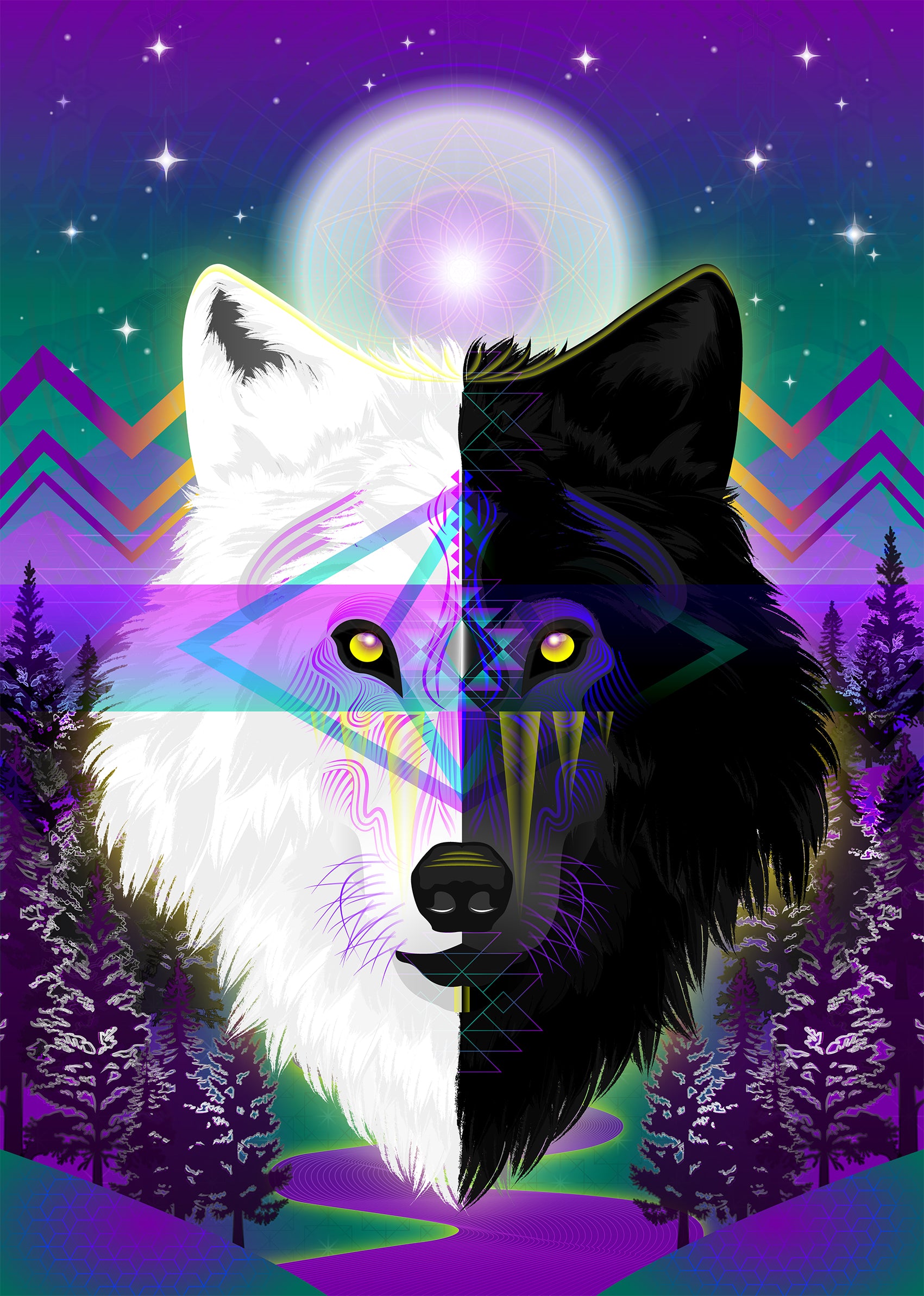 The black-and-white Wolf symbolizes the duality we all navigate when making choices, reminding us that true wisdom lies in finding balance.