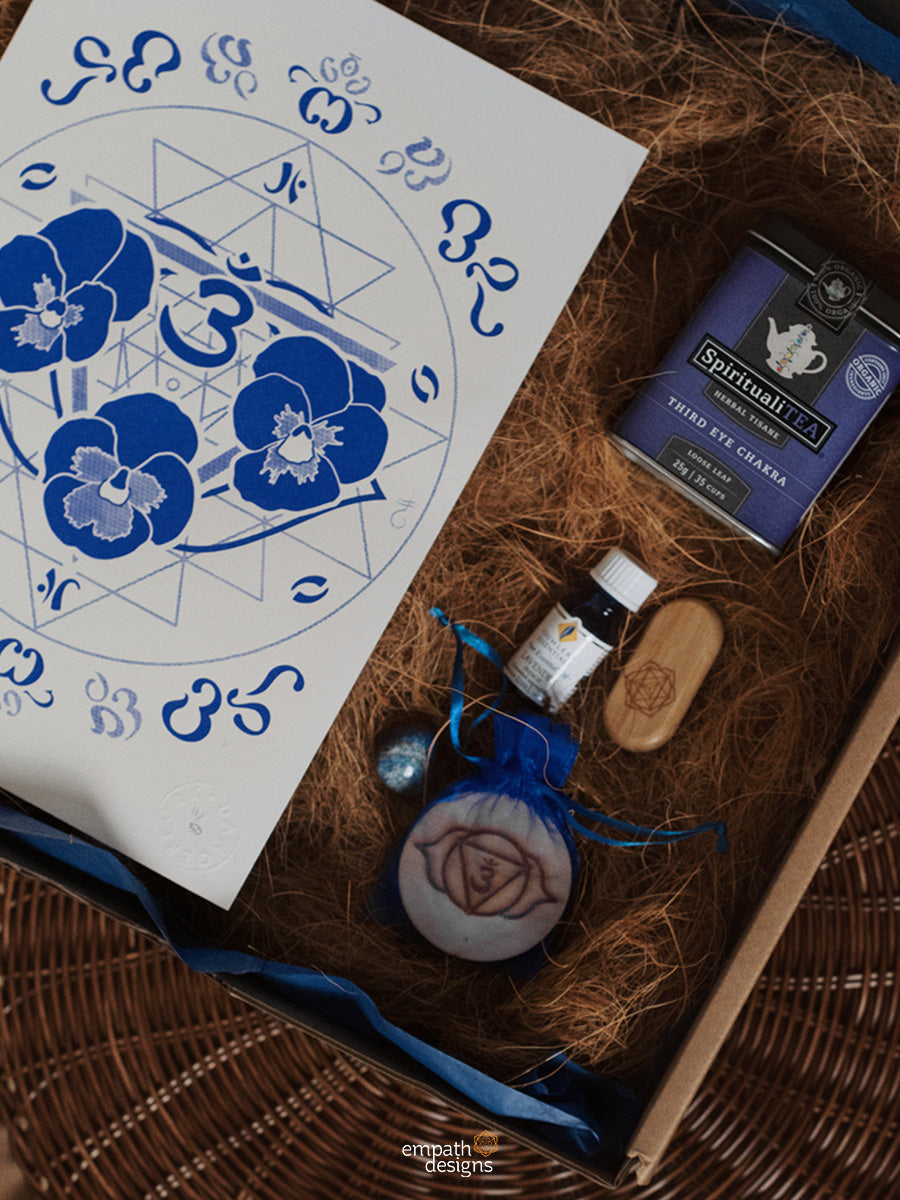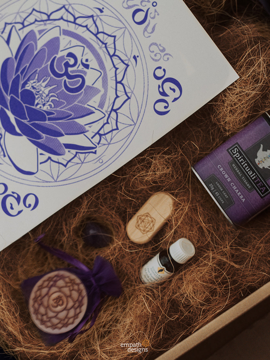 Enhance your meditation experience through your senses of sight, smell, touch, taste, hearing and intuition with these beautifully curated Chakra Balancing Meditation Ritual Kits.