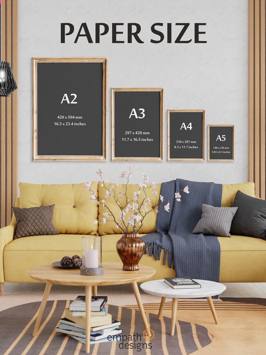 Custom frame may be available for order for A4 collection purchase only, subject to supplier’s availability.