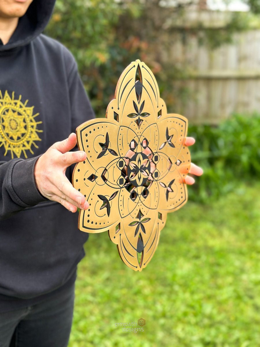 The Starseeds artwork collection consists of a unique golden mandala, symbolizing the universal light that binds us all.
