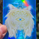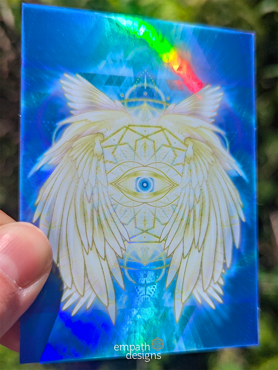This unique piece combines ethereal beauty with a mesmerizing holographic effect, perfect for transforming any personal item into a beacon of serene energy.