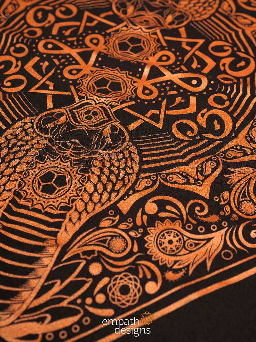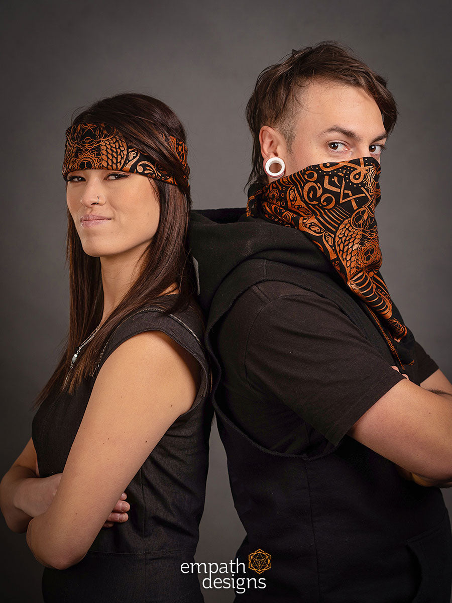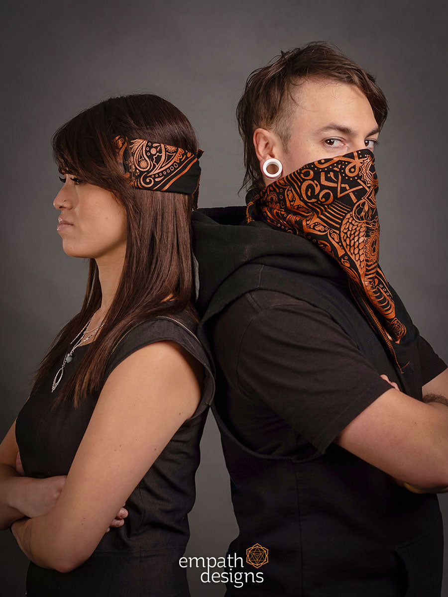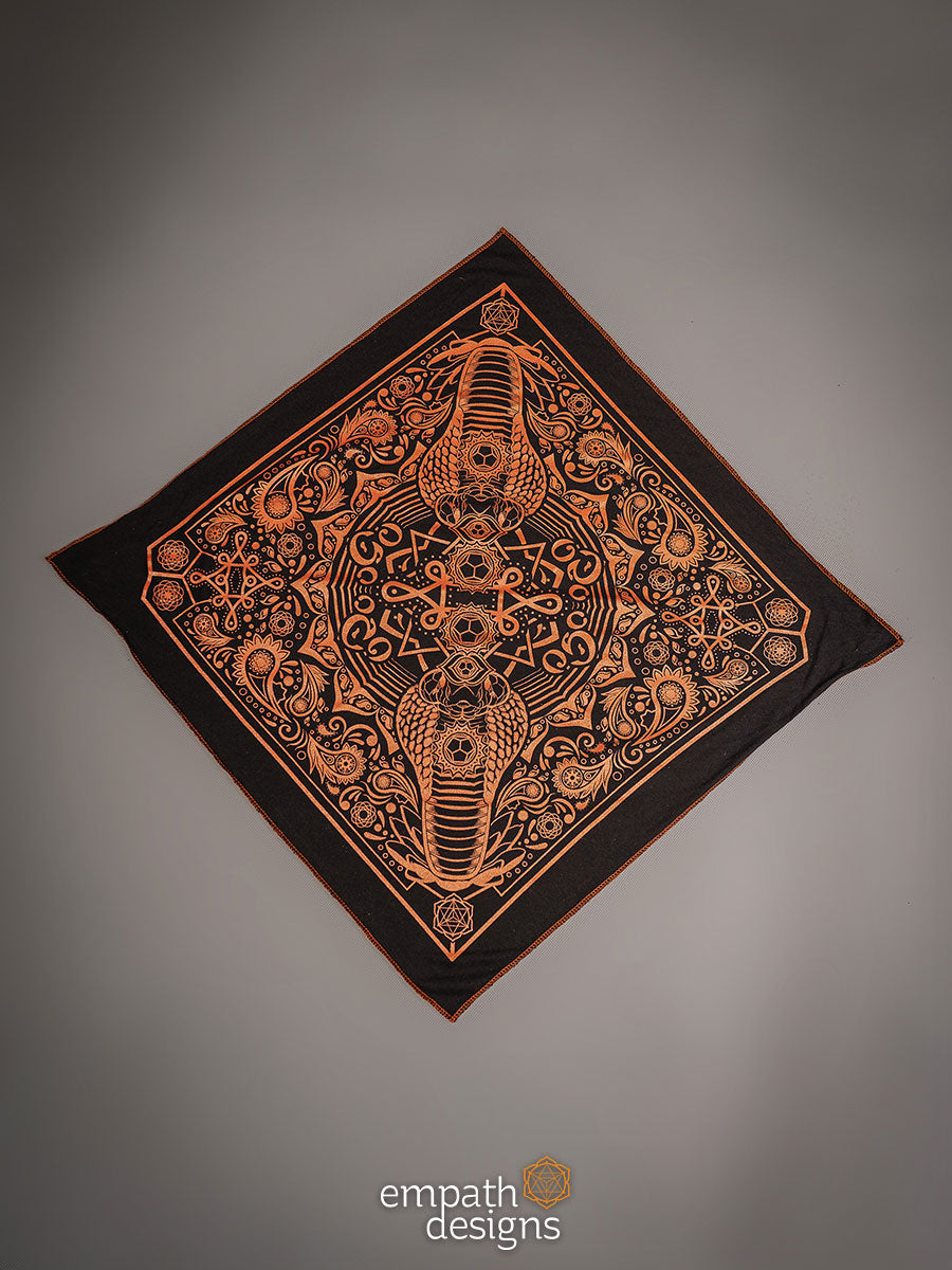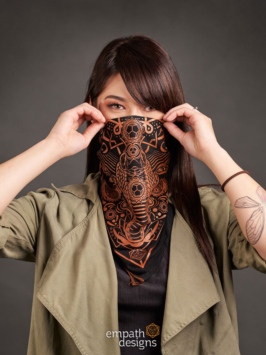 ‘Evolve’ is an evolution of the Spectacled Cobra design from the Animalis collection, printed in metallic copper ink on black. Incorporating an original paisley design that’s inspired by Hindu art, these bandanas are handmade with love and are the perfect accessory to let your inner reptilian beam.