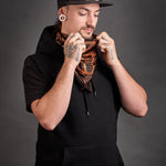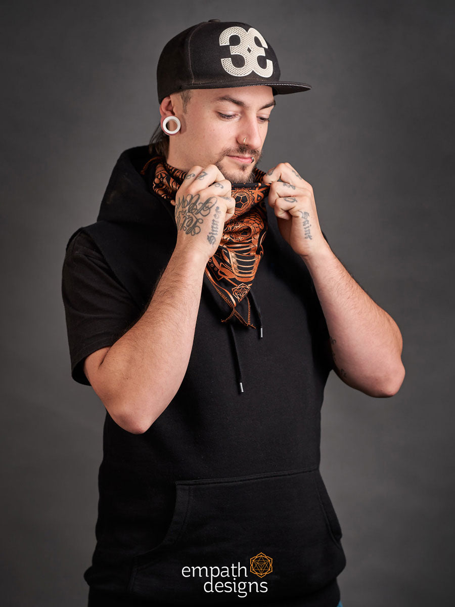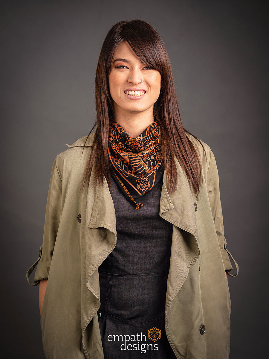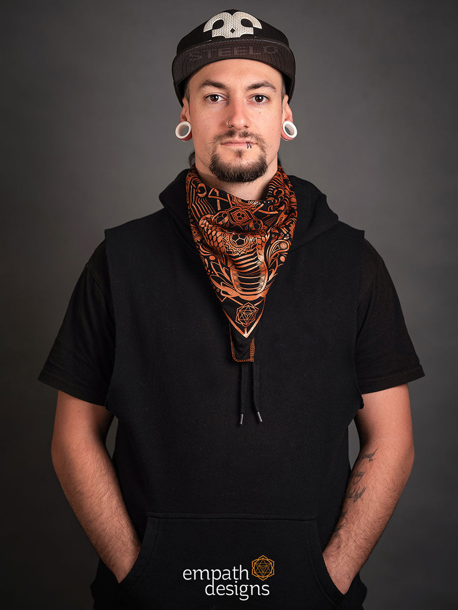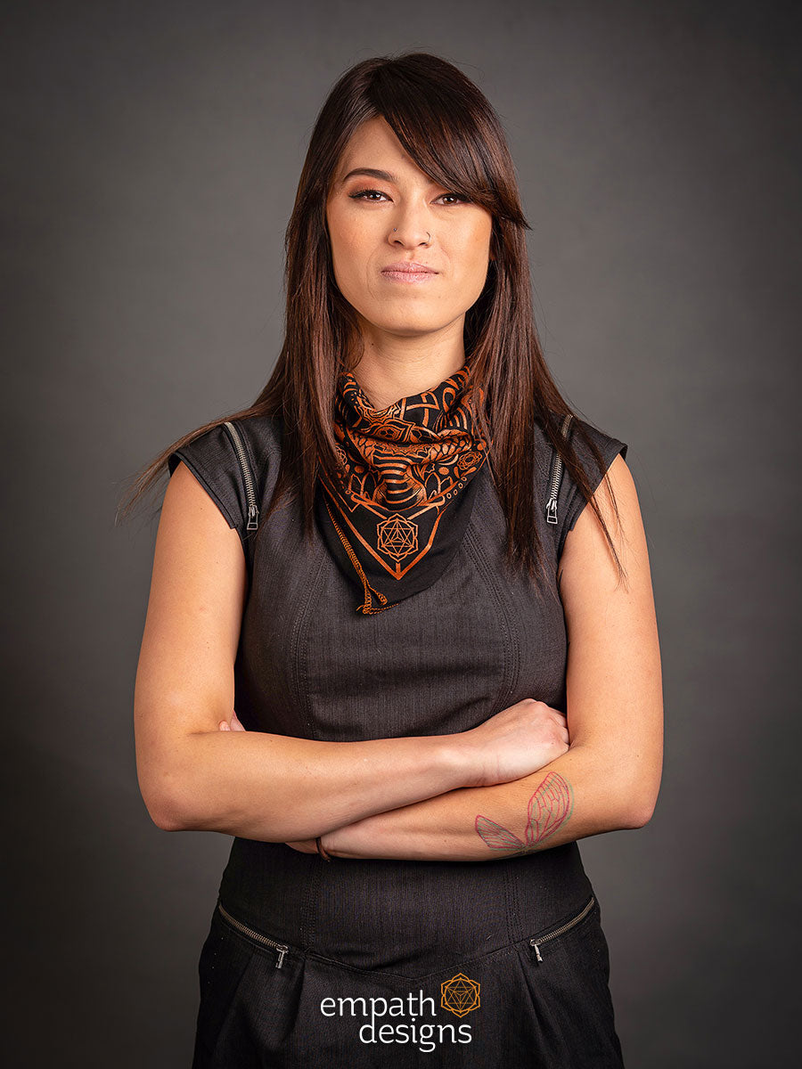 ‘Evolve’ is an evolution of the Spectacled Cobra design from the Animalis collection, printed in metallic copper ink on black. Incorporating an original paisley design that’s inspired by Hindu art, these bandanas are handmade with love and are the perfect accessory to let your inner reptilian beam.