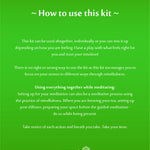 - Set aside a dedicated time for your meditation or mindfulness practice. If using the kit with the guided meditation, we recommend to set aside approximately 30 minutes.
