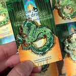 Carry the transformative energy of "Follow the Dragon, Follow Your Heart" with you in the form of this stunning limited-edition enamel pin.
