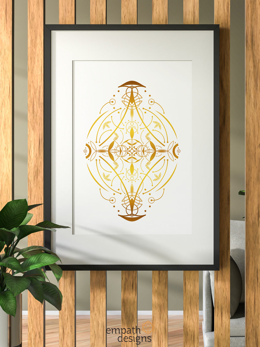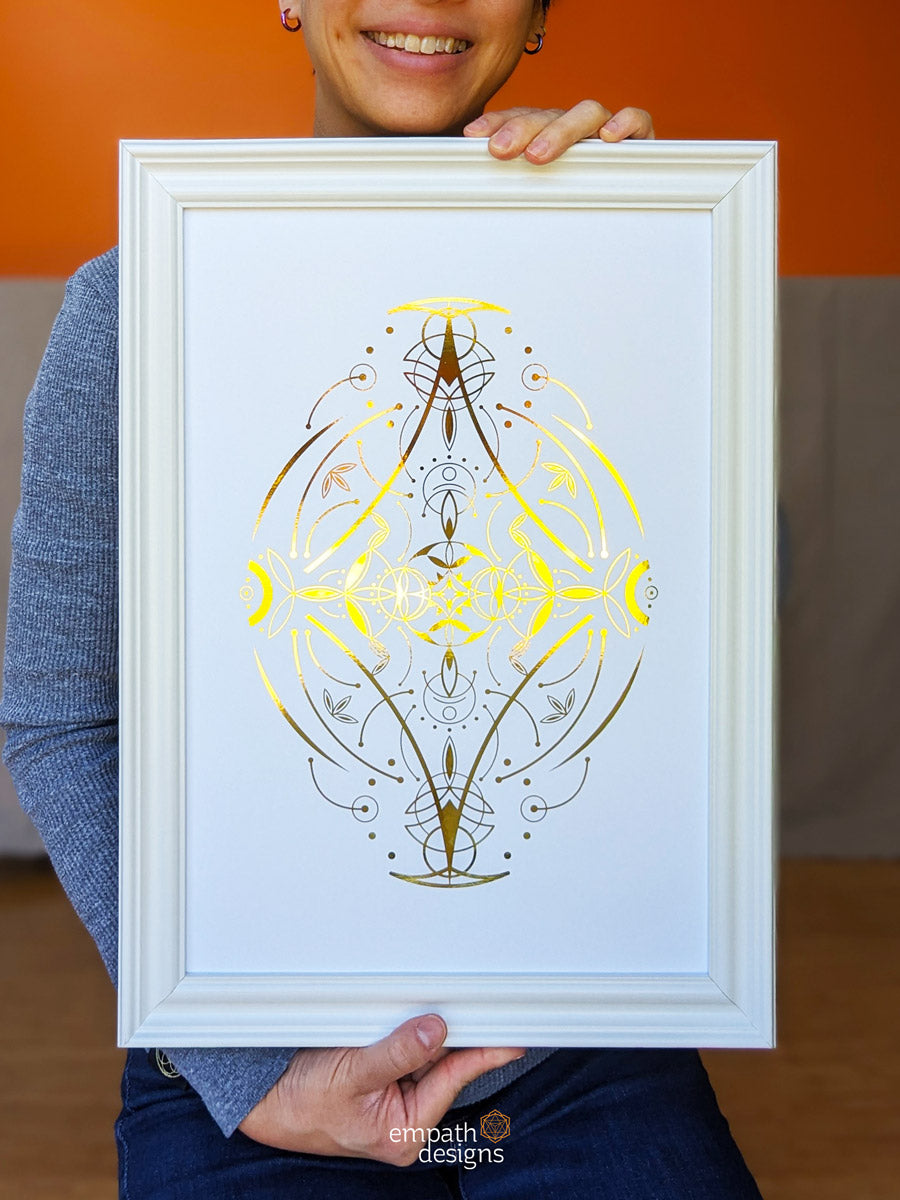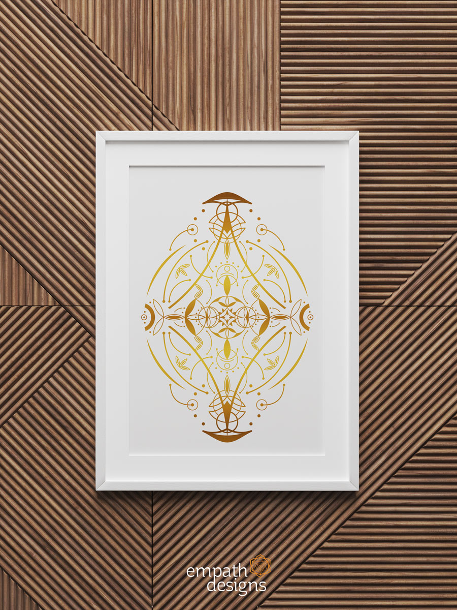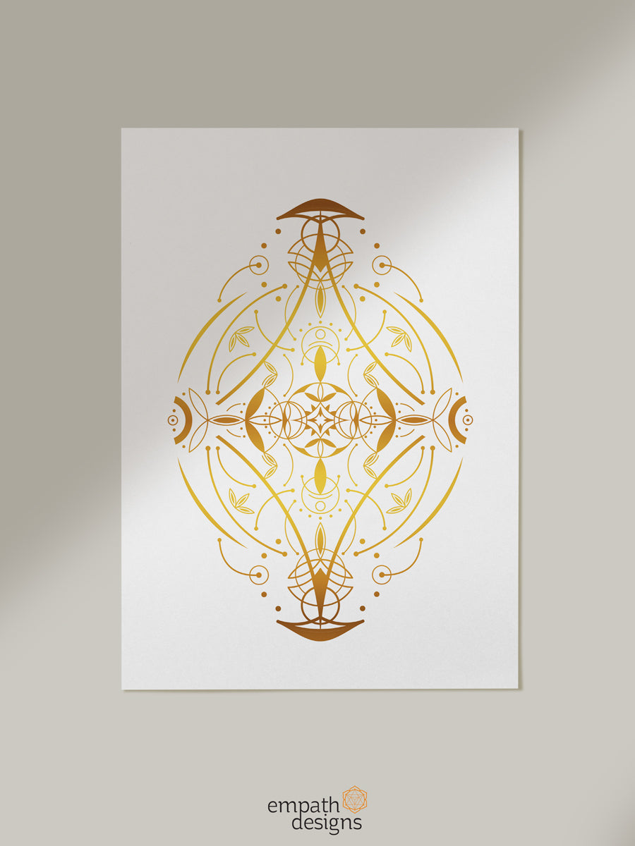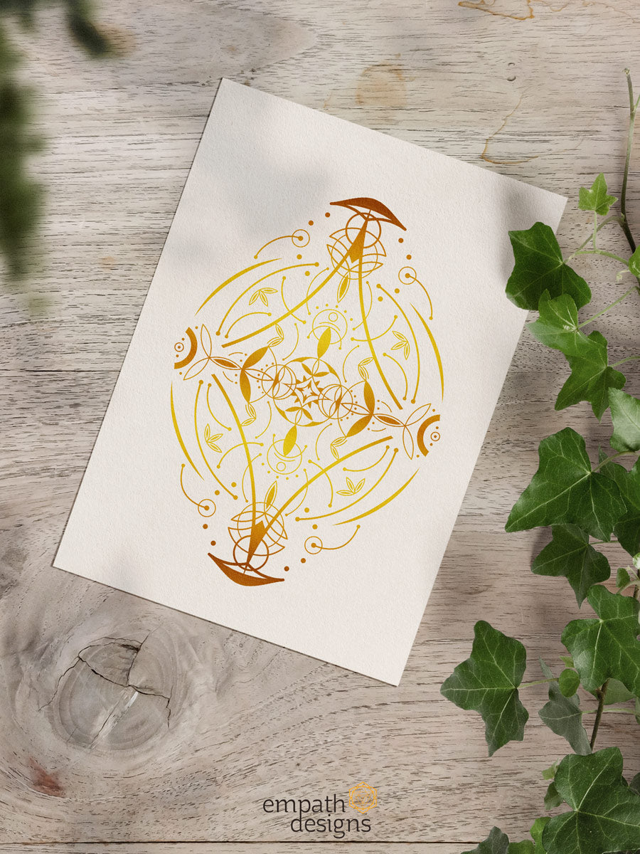 The Starseeds artwork collection consists of a unique golden mandala, symbolizing the universal light that binds us all.