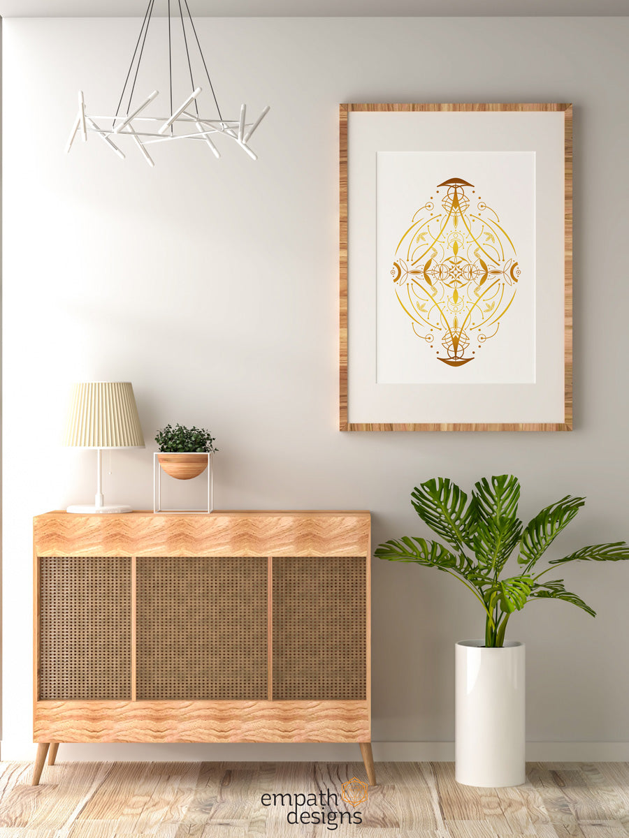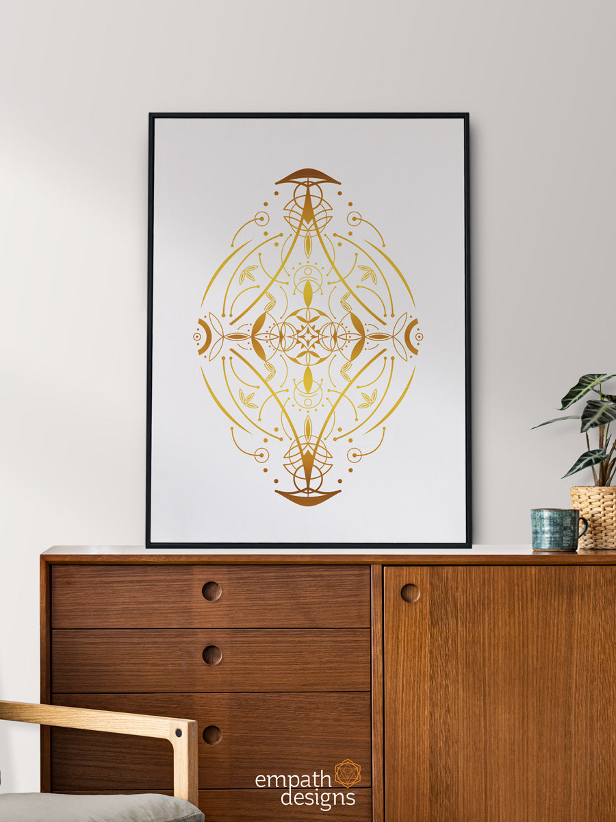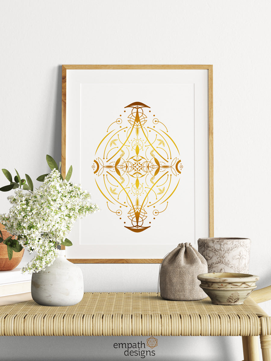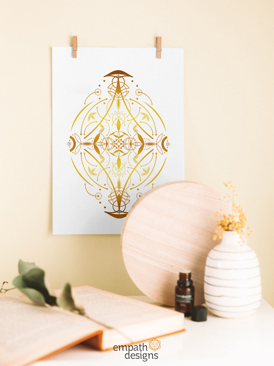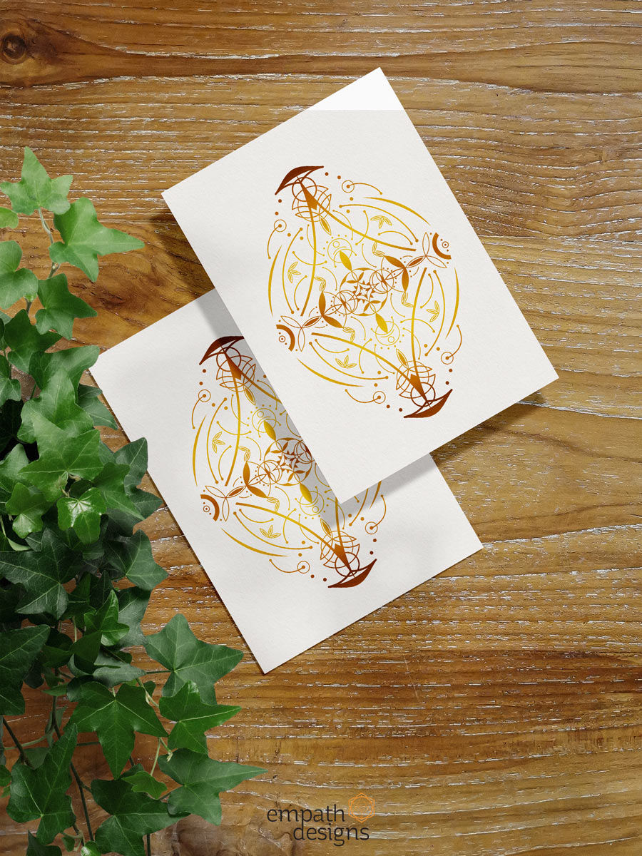 The Starseeds artwork collection consists of a unique golden mandala, symbolizing the universal light that binds us all.