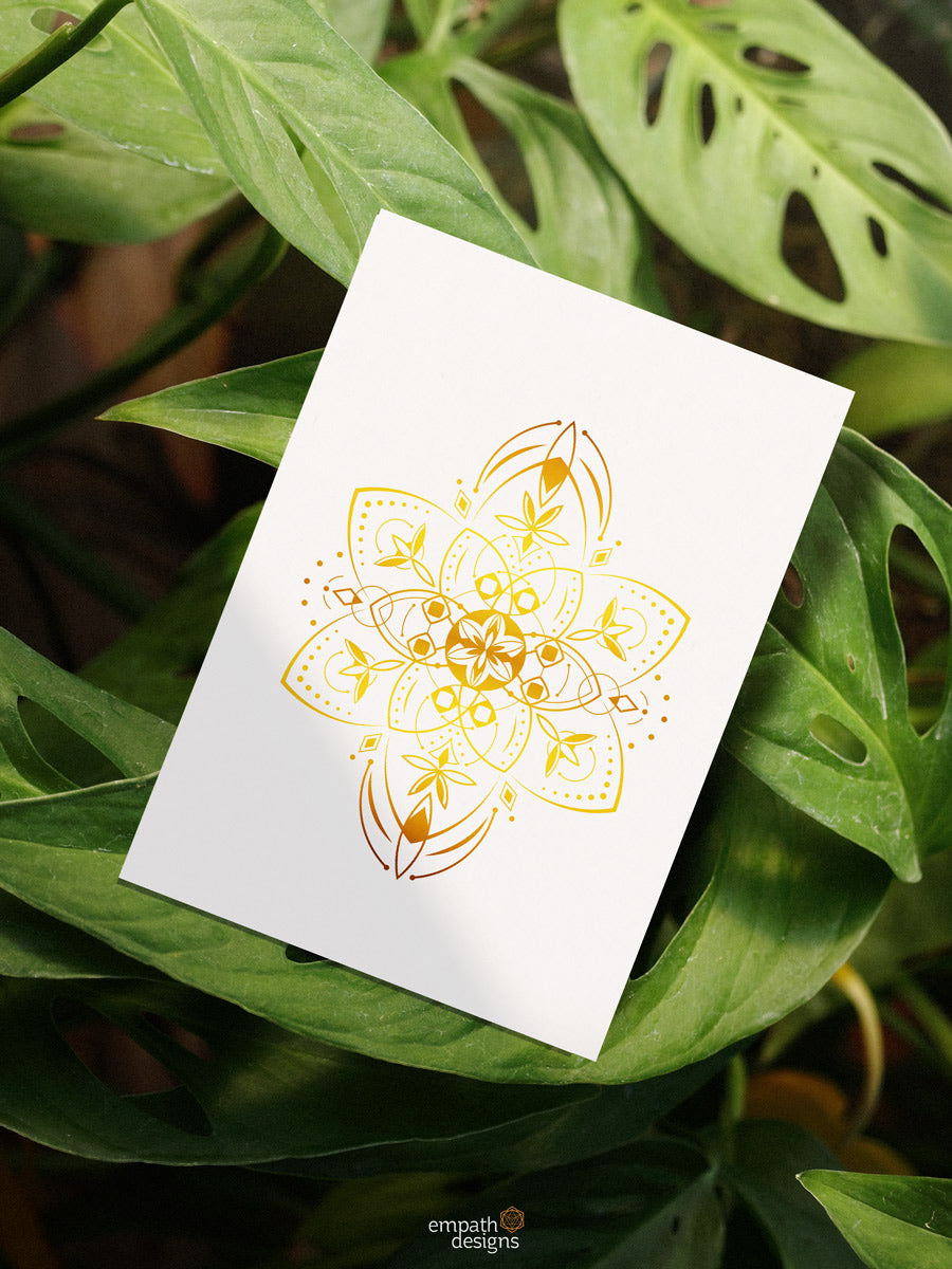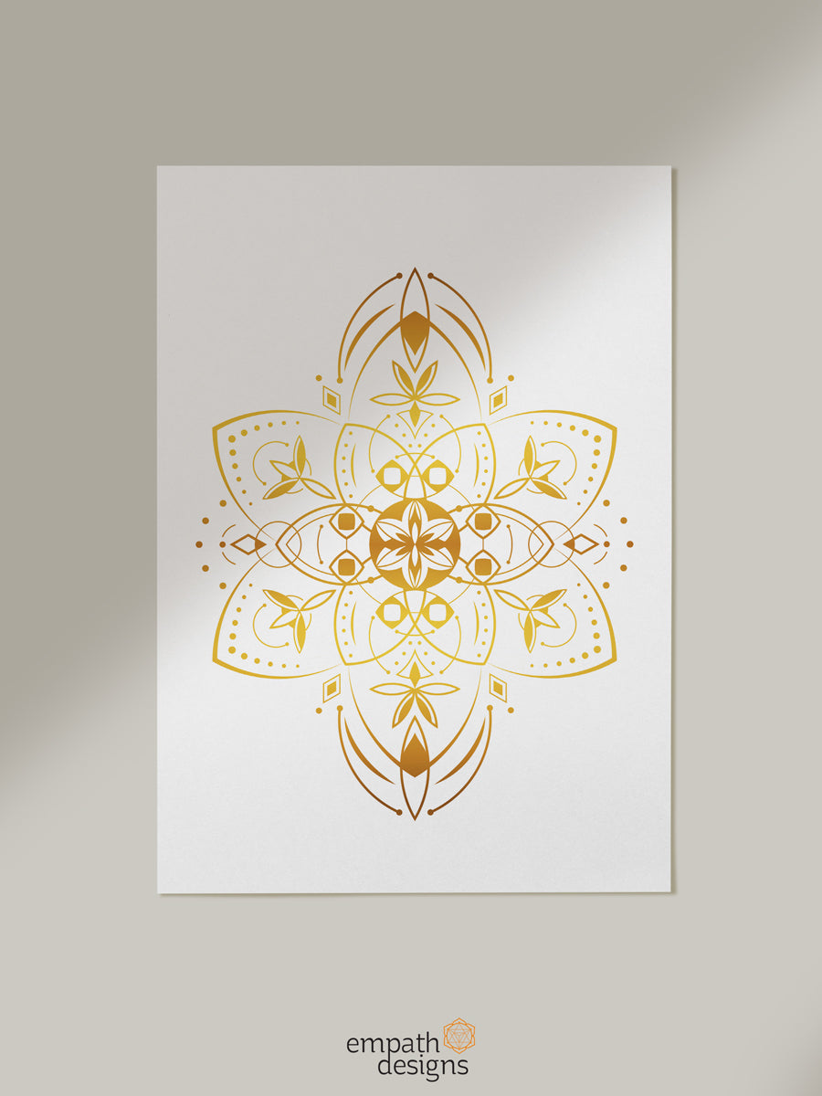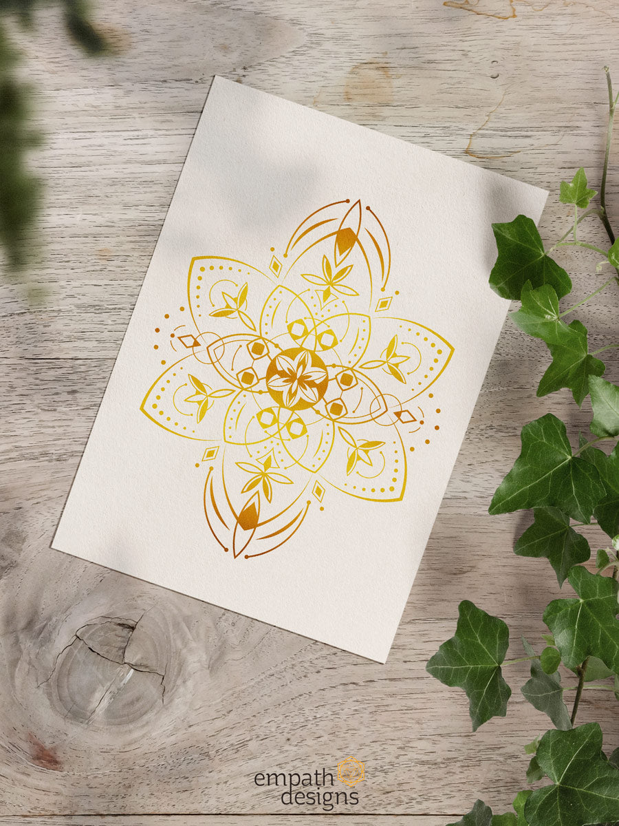 The Starseeds artwork collection consists of a unique golden mandala, symbolizing the universal light that binds us all.
