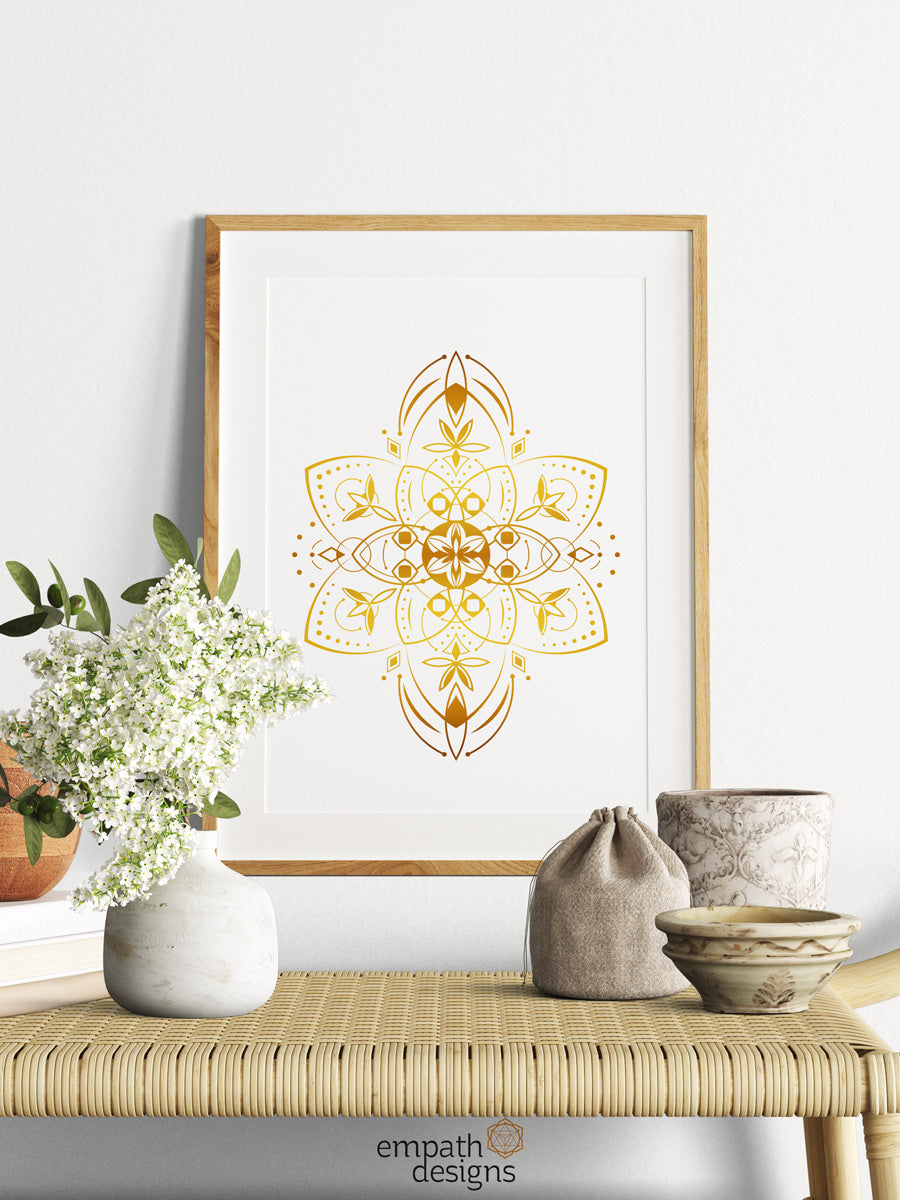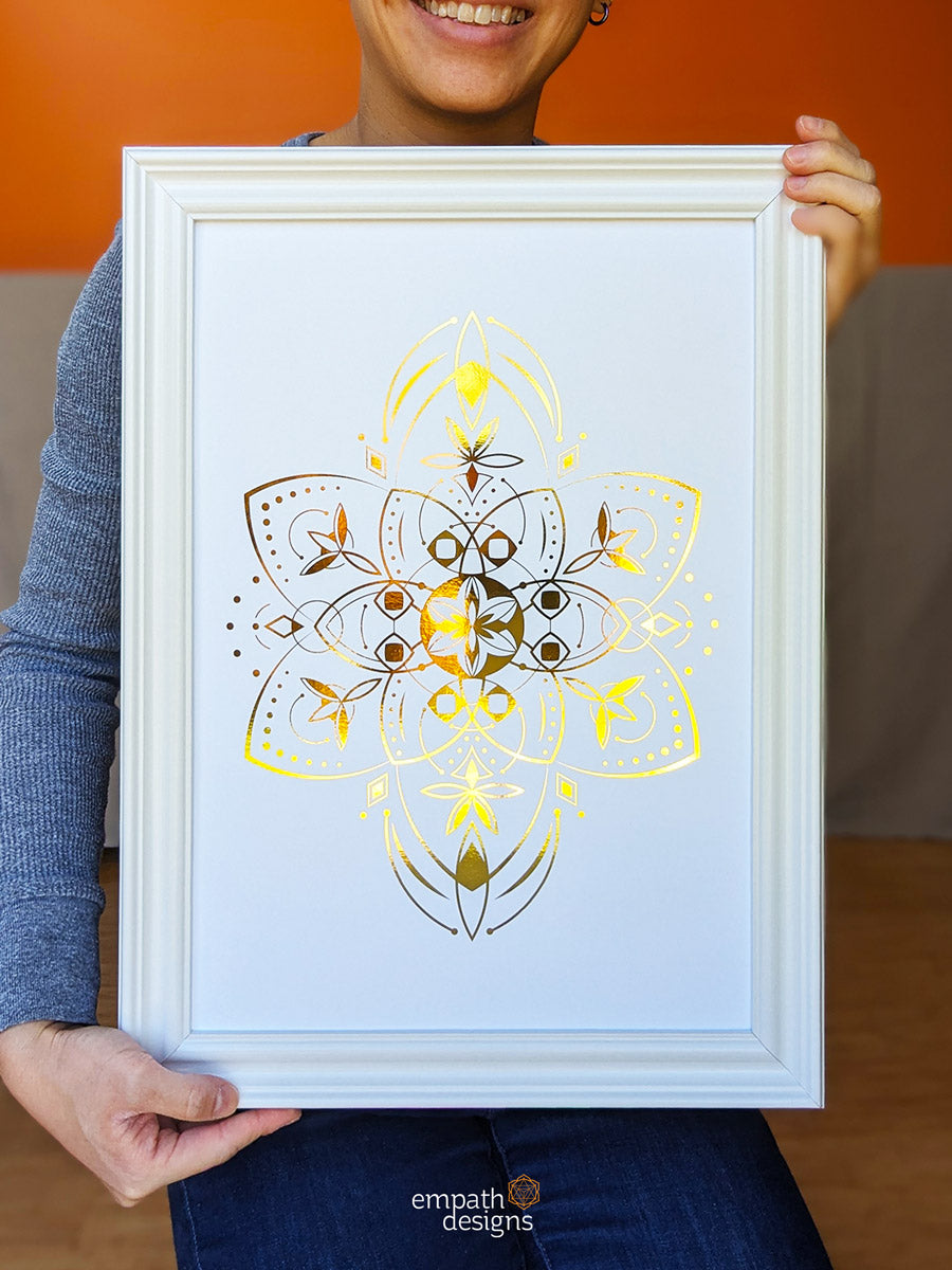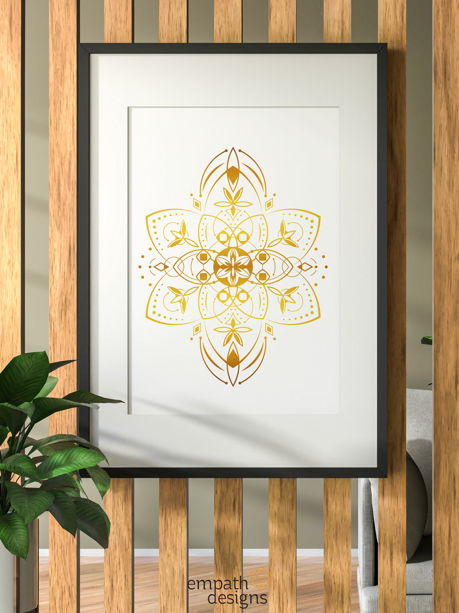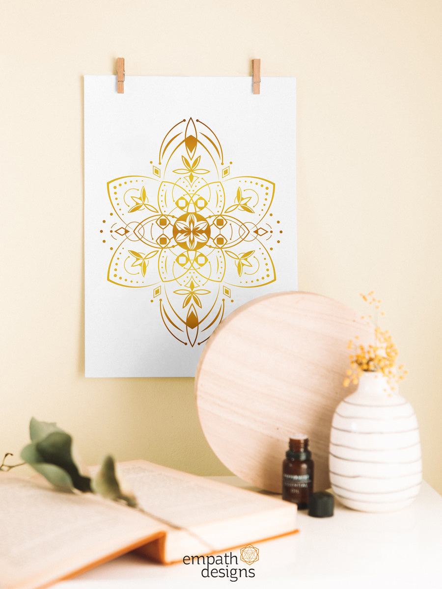 The Starseeds artwork collection consists of a unique golden mandala, symbolizing the universal light that binds us all.