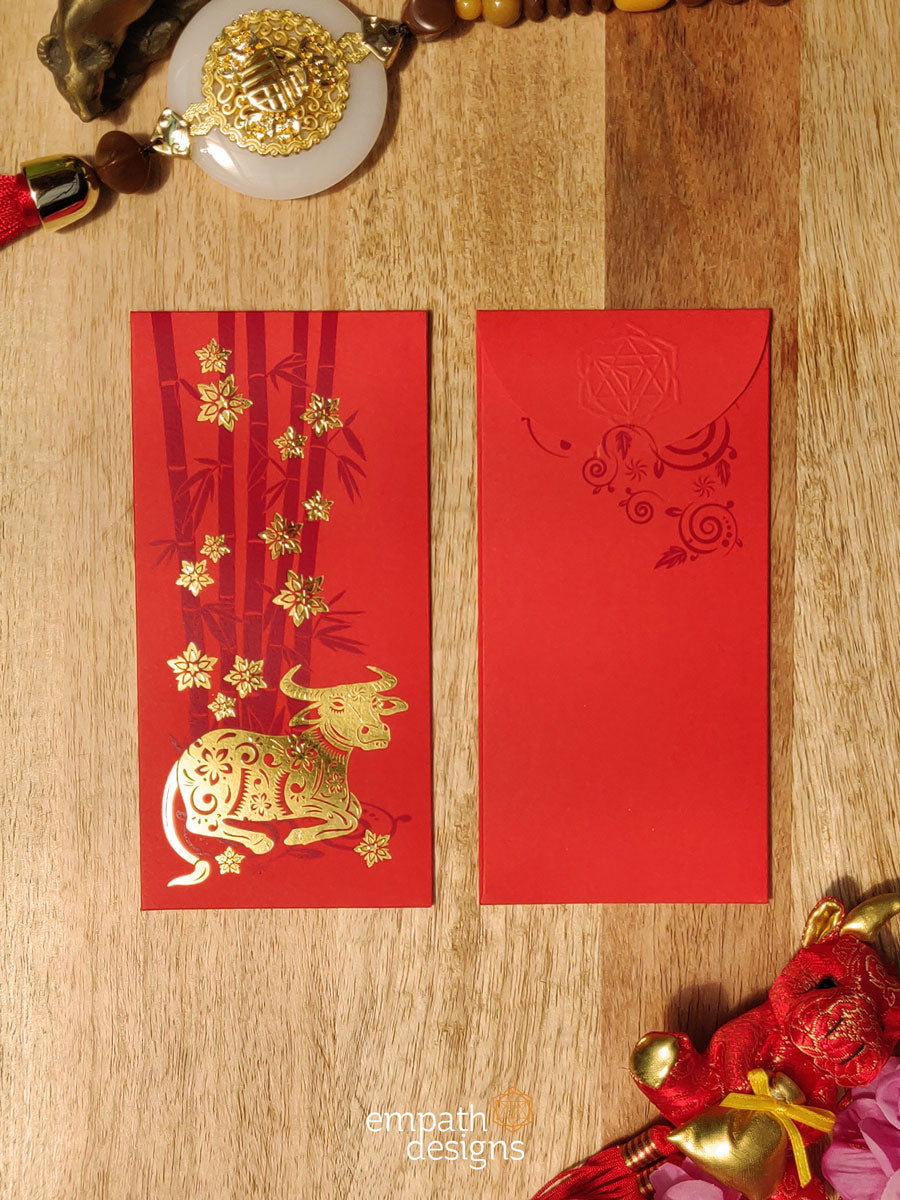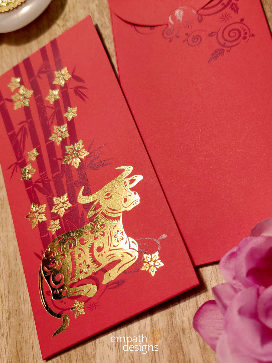 Printed on a gorgeous Kaskad Red Robin paper with gold hot-stamp finish, lets celebrate the start of a the second year of the 12-year cycle with this beautiful and symbolic red packets which you can gift to your loved ones or keep for collection. This original ox design is inspired by the ancient practice of Chinese paper cutting. Read the full description for the symbolic meaning of red packets, and the Chinese Zodiac.